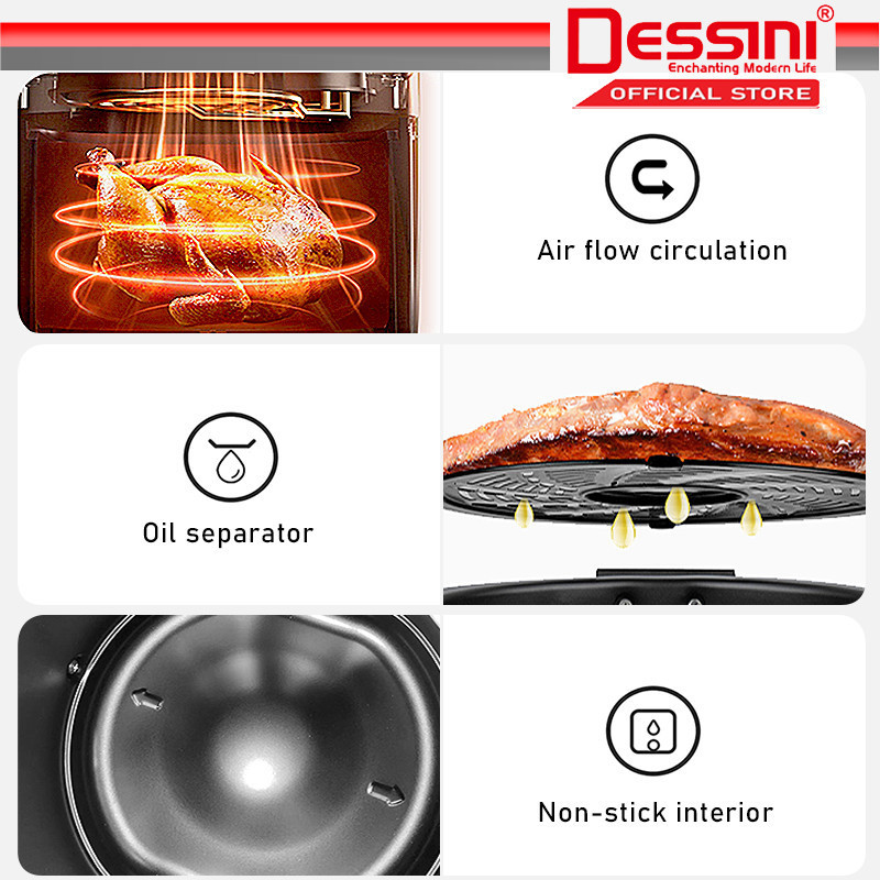 DESSINI ITALY 4.5L Electric Air Fryer Convection Oven Toaster Timer Oil Free Roaster Breakfast Machine Ketuhar