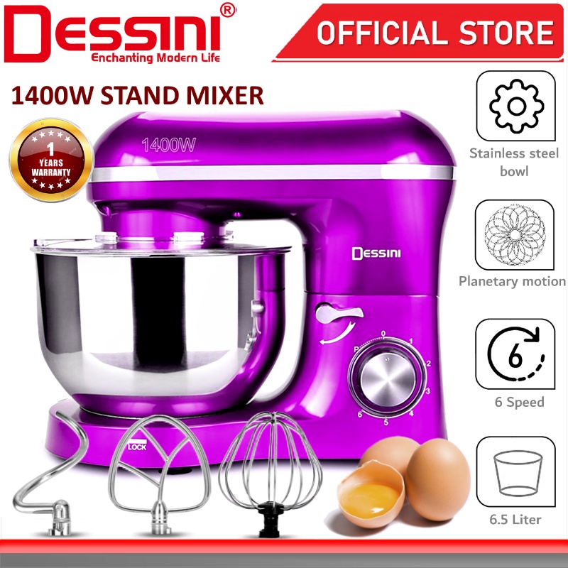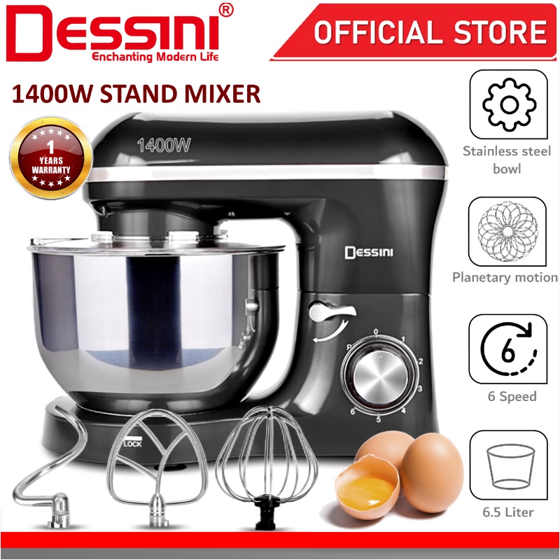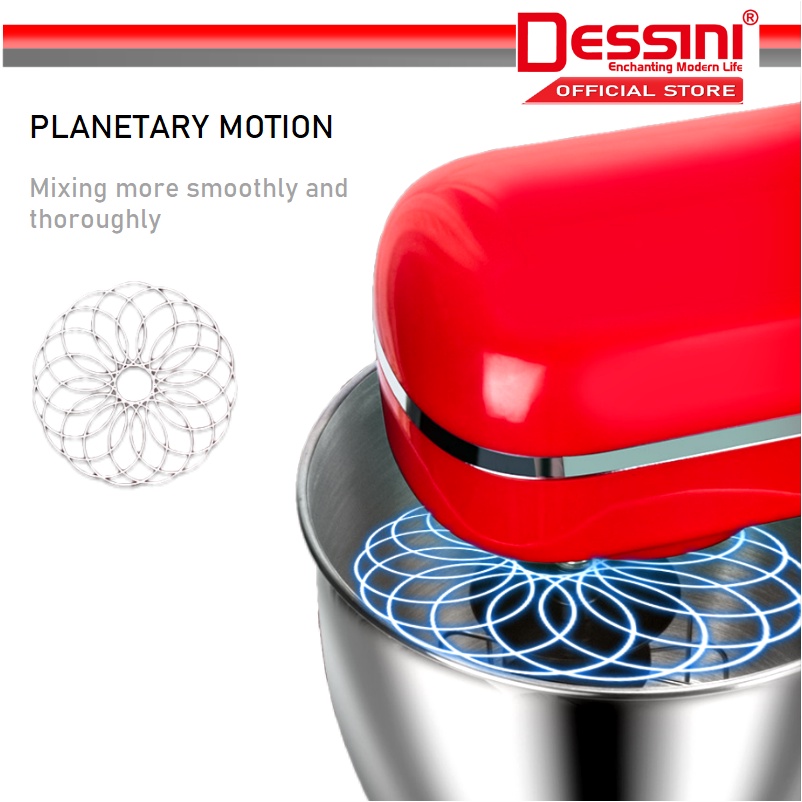 DESSINI ITALY 6 Speed Electric Stand Mixer Egg Beater Blender Grinder Dough Whisk Bowl Pengadun Bancuh Telur (6.5L)