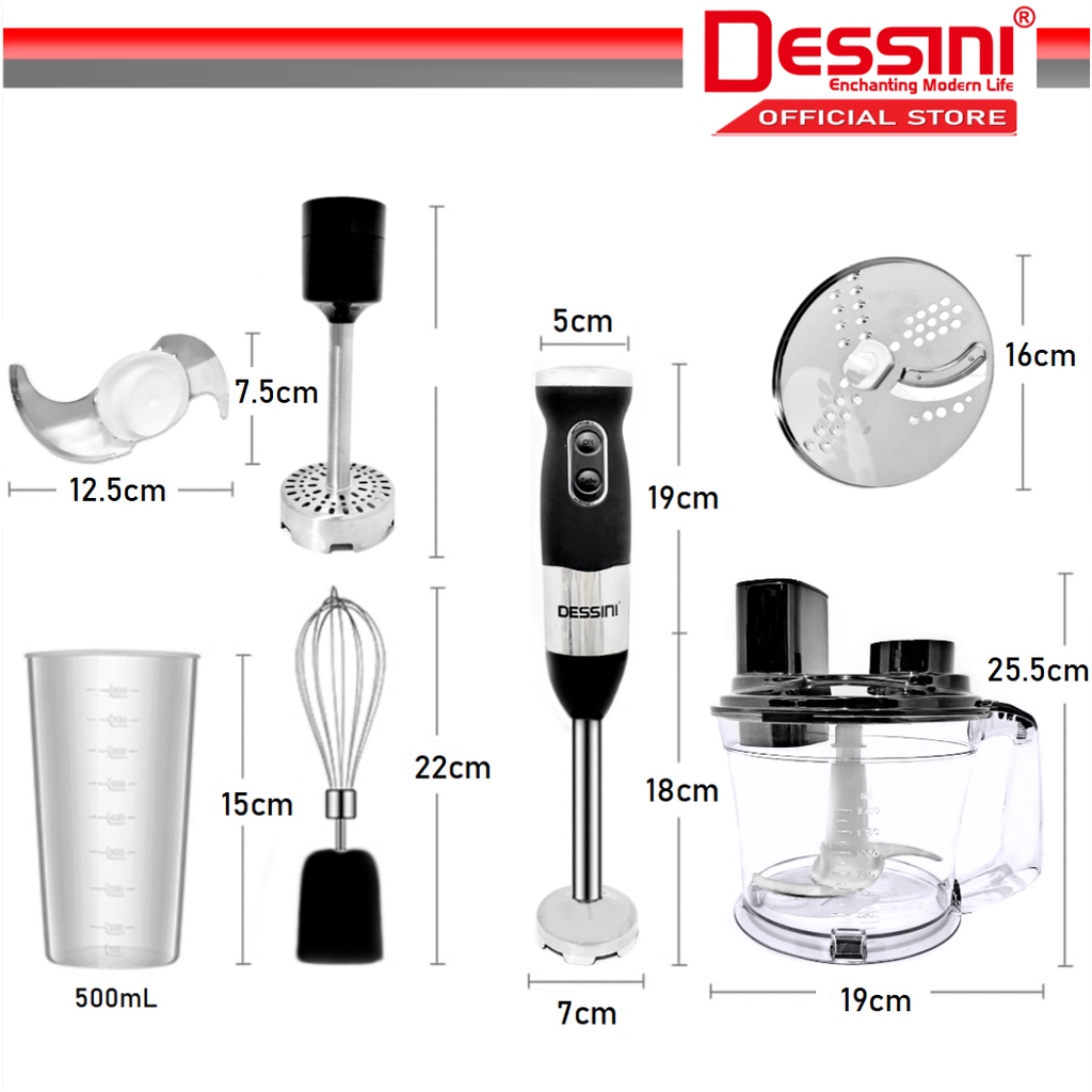 DESSINI ITALY 8 IN 1 Hand Blender Chopper Mixer Grinder Juicer Food Processor Stainless Steel Knife Blade Pengisar