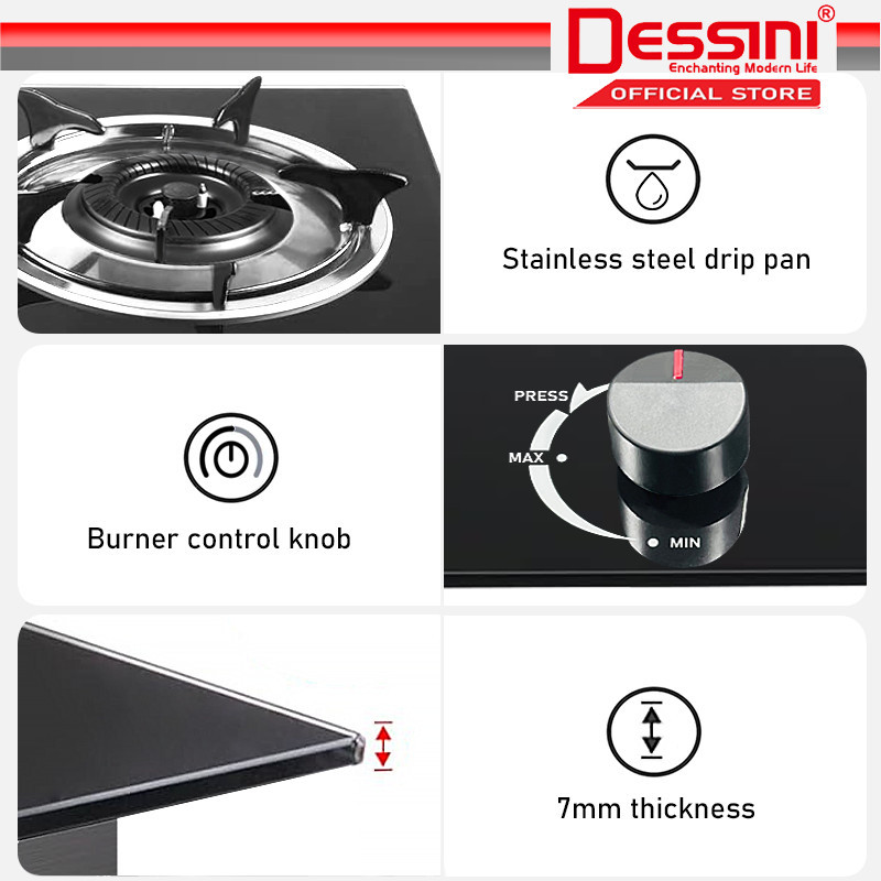 DESSINI ITALY Auto Ignition Gas Cooker Propane LPG Hob 2 Burner Built In Cooktop Tabletop Tempered Glass Stove Dapur Gas