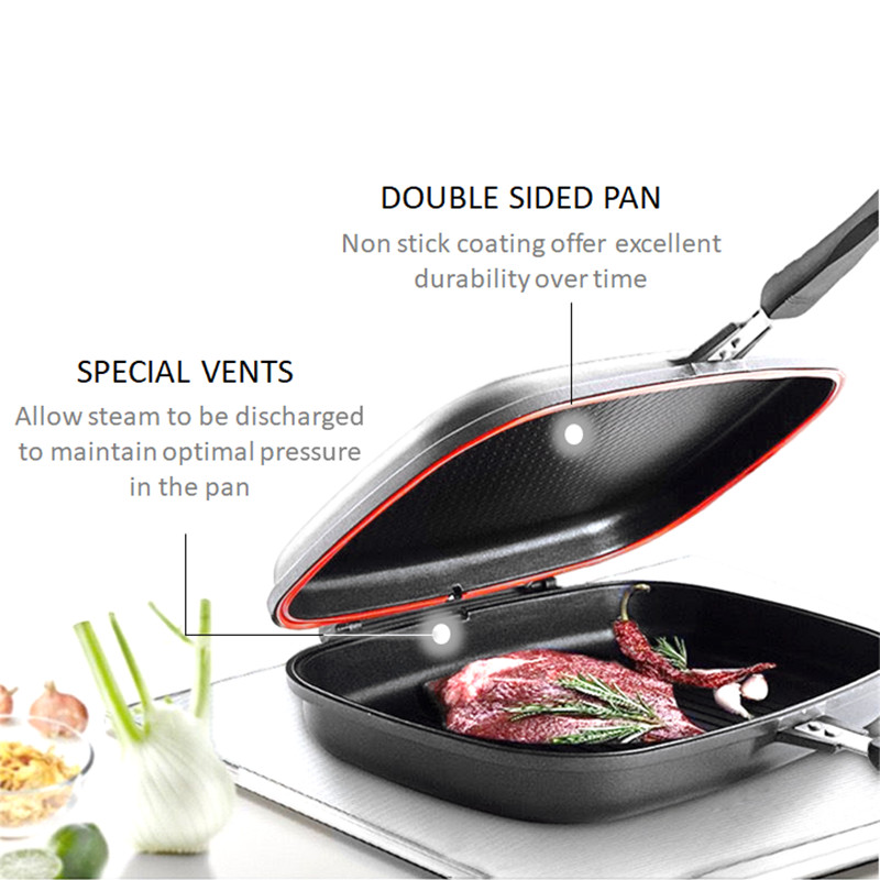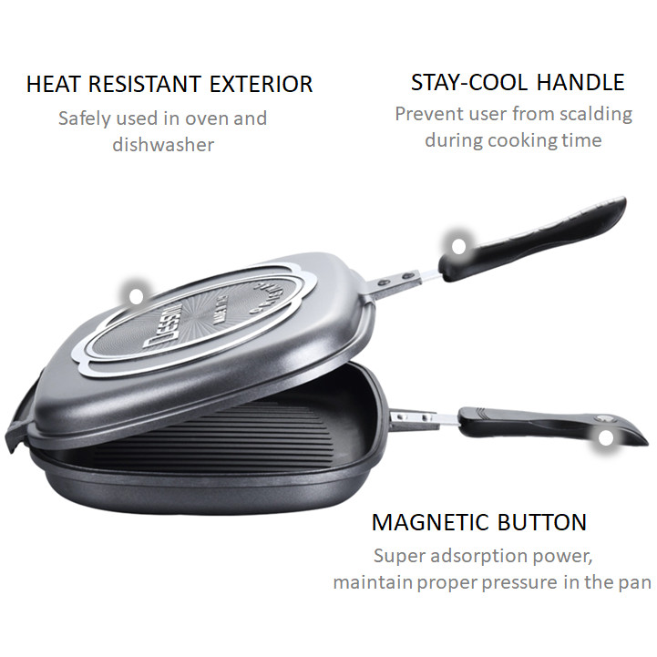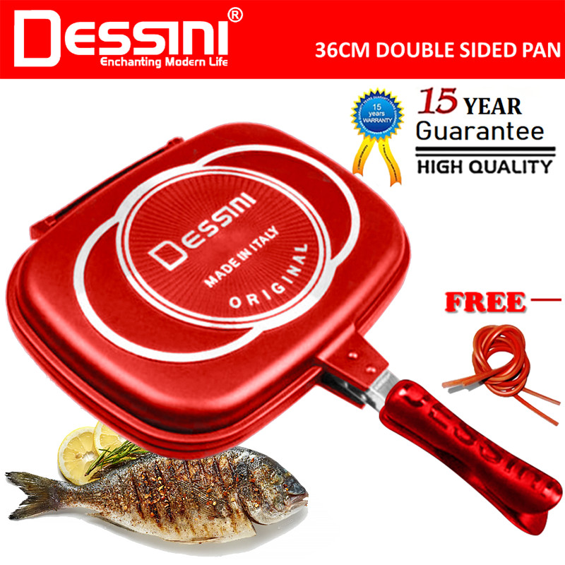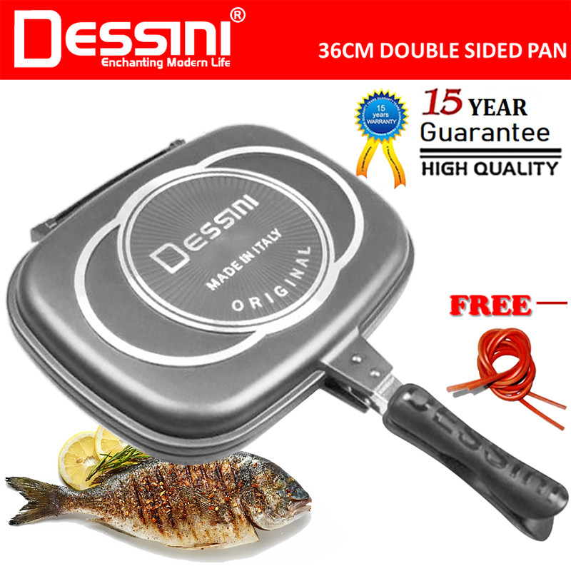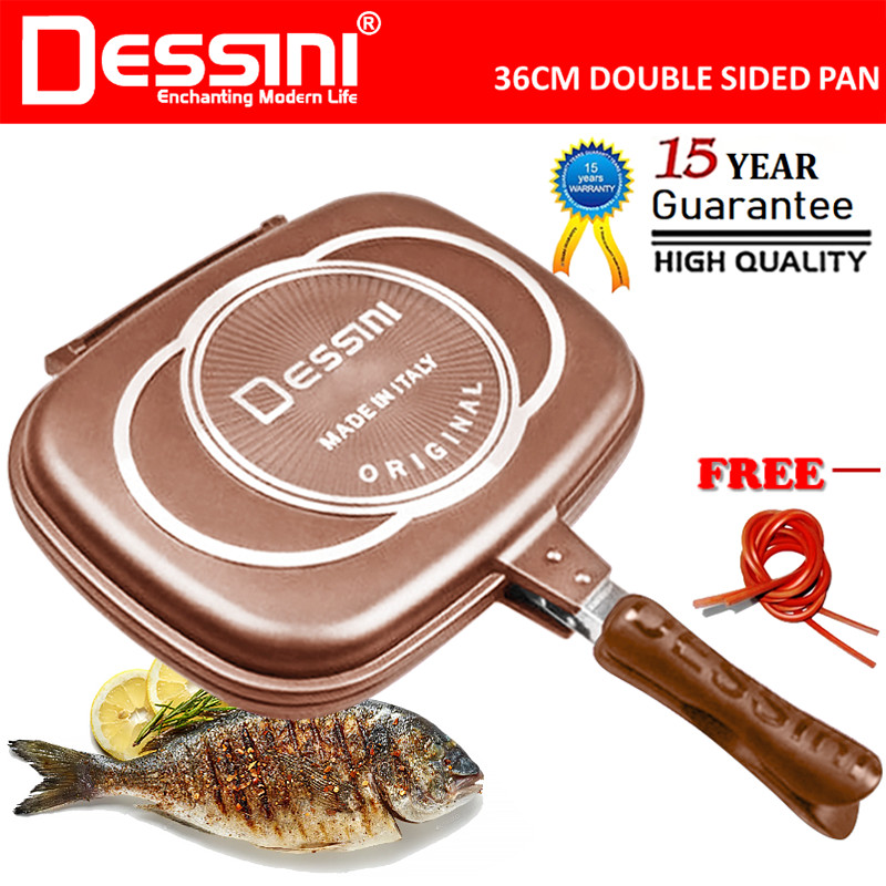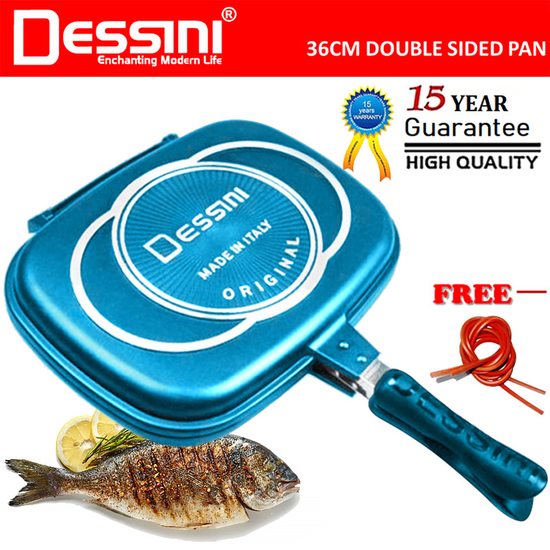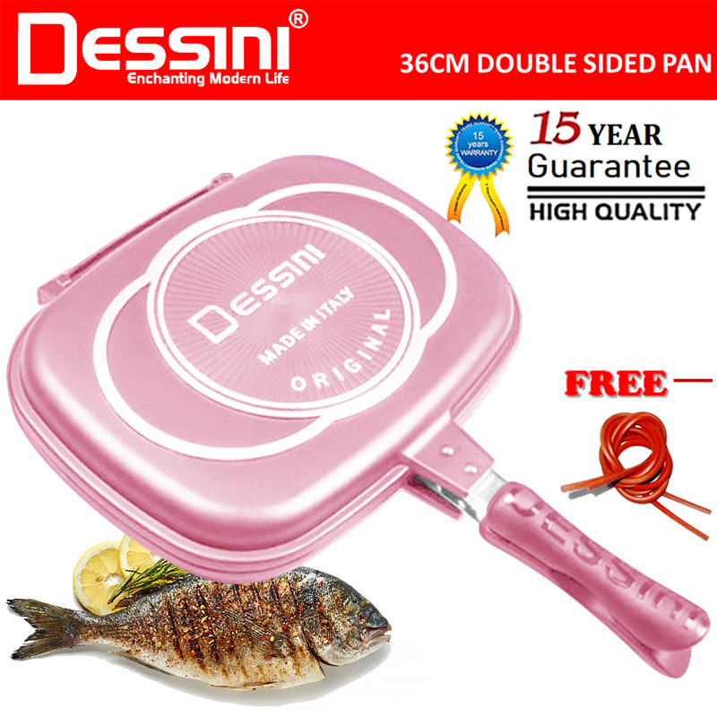 DESSINI ITALY DP-36 Granite Aluminium Non Stick Double Sided Pressure Grill Fry Pan Cookware Tool (36cm)