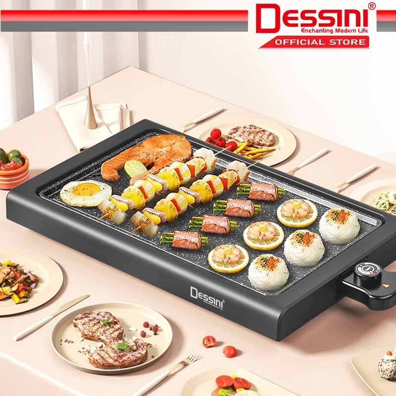 DESSINI ITALY Electric BBQ Grill Steak Frying Pan Teppanyaki Barbecue Non-Stick Baking Pan with Temperature Control