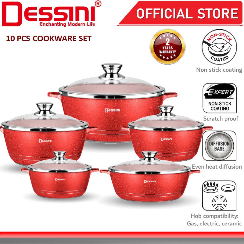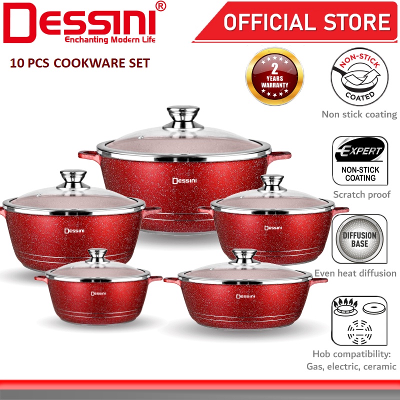 DESSINI ITALY Granite Aluminium Non Stick Casserole Pot Bowl Deep Fry Pan Cookware Tool (10 Pcs)