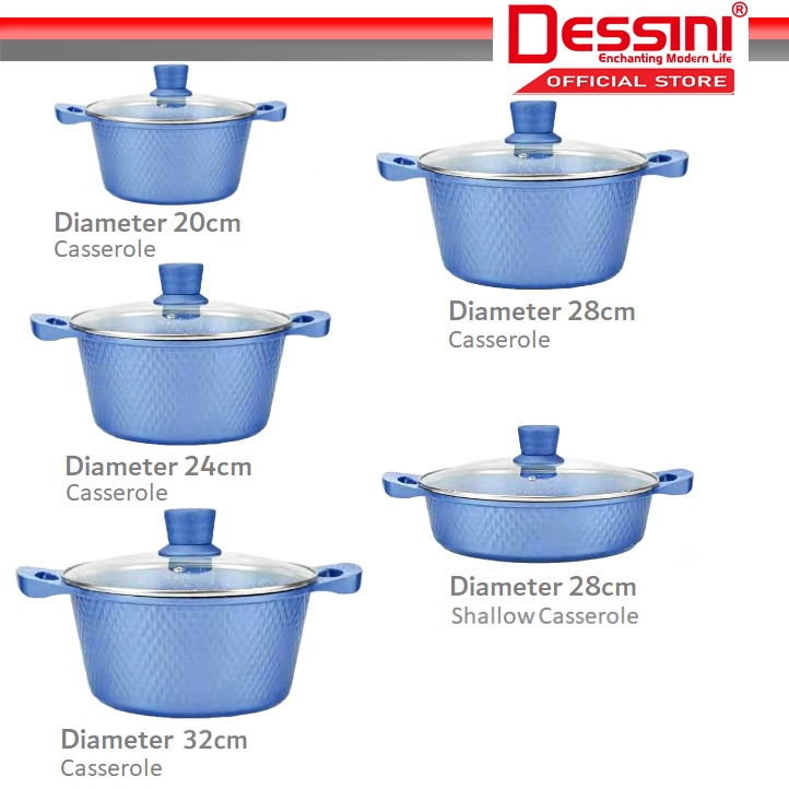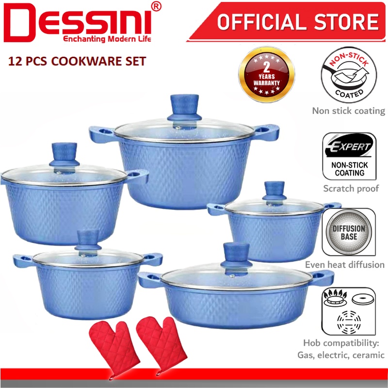DESSINI ITALY Granite Aluminium Non Stick Casserole Pot Bowl Deep Fry Pan Cookware Tool (12 Pcs)
