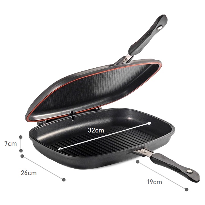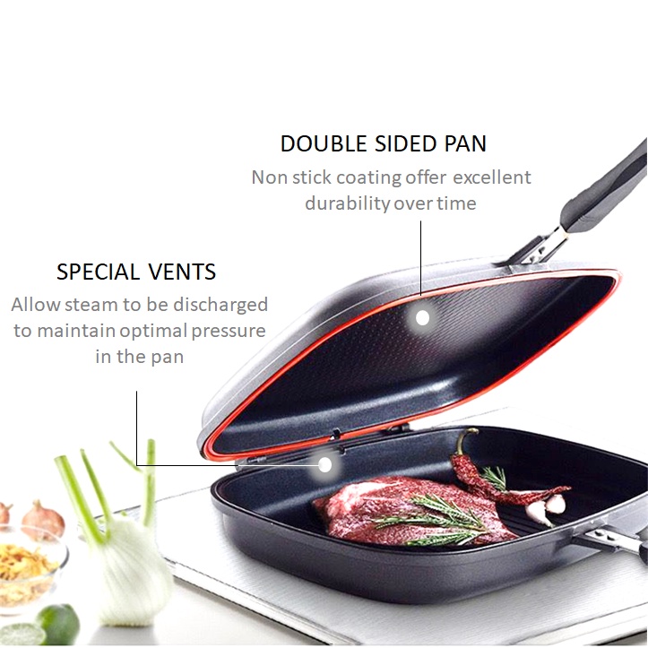 DESSINI ITALY Granite Aluminium Non Stick Double Sided Pressure Grill Fry Pan Cookware Tool (32cm)