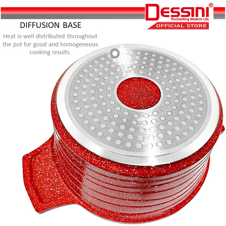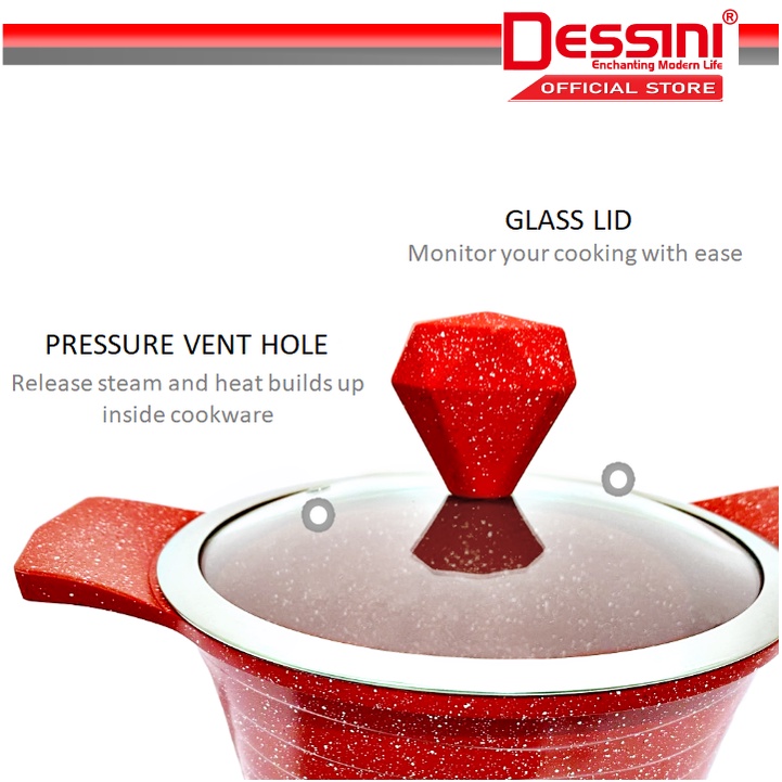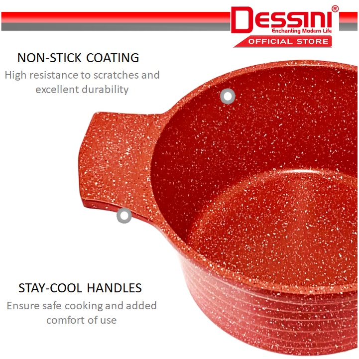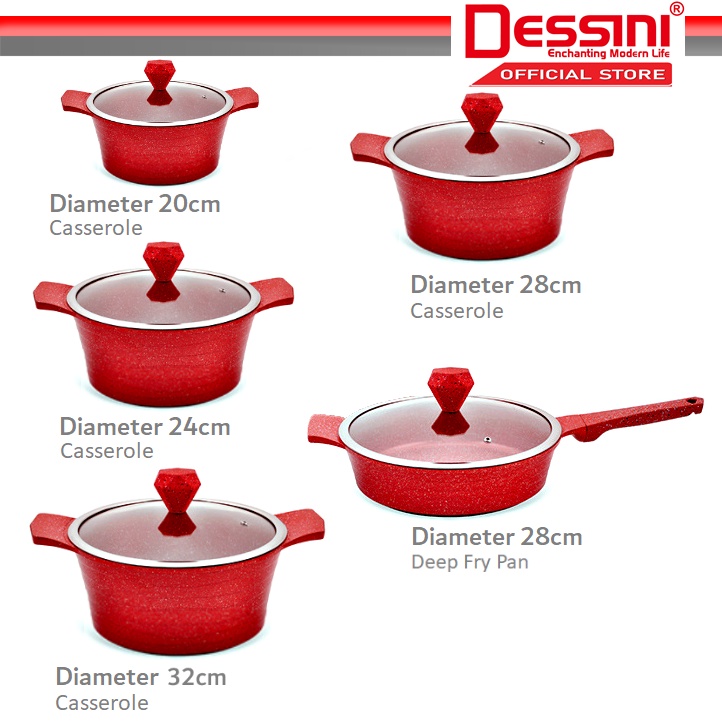 DESSINI ITALY Granite Aluminium Non Stick Induction Casserole Pot Bowl Deep Fry Pan Cookware Tool (17 Pcs)