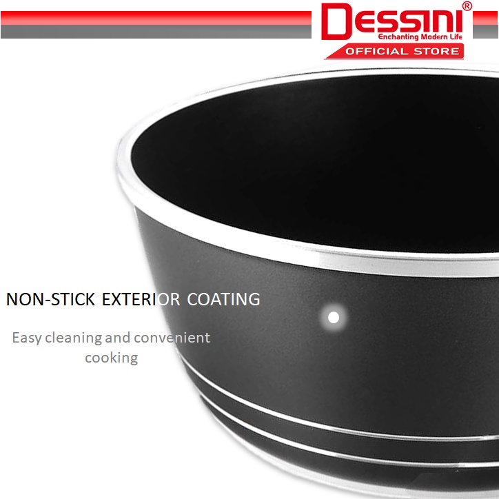 DESSINI ITALY Granite Die Cast Aluminium Non Stick Casserole Pot Bowl Deep Fry Pan Cookware Tool (24cm)