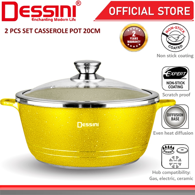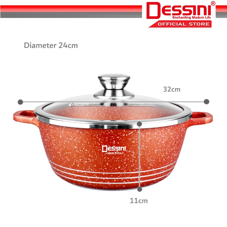 DESSINI ITALY Granite Die Cast Aluminium Non Stick Casserole Pot Bowl Deep Fry Pan Cookware Tool (24cm)