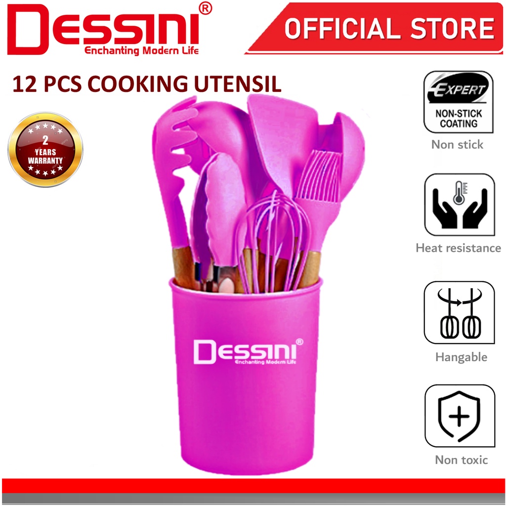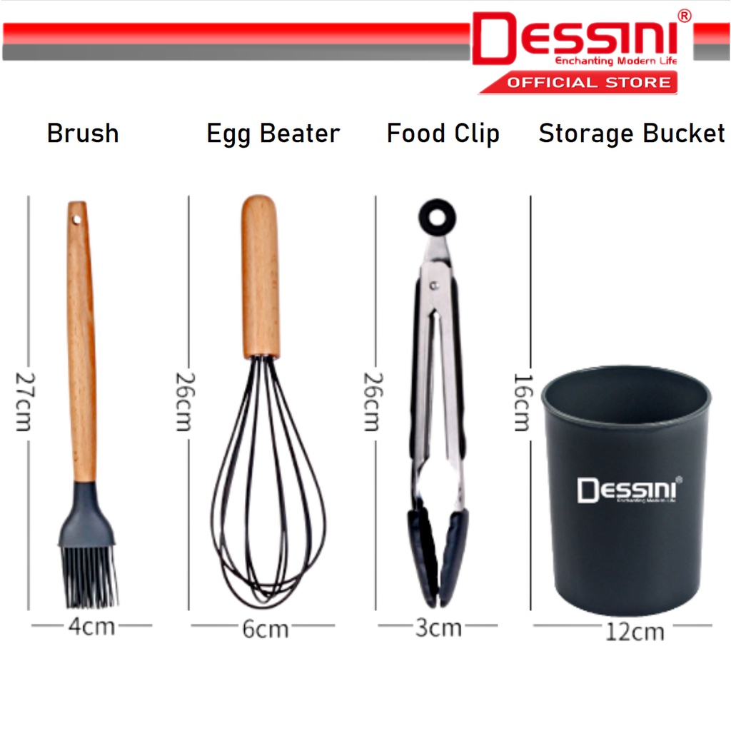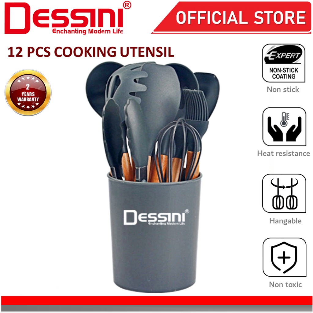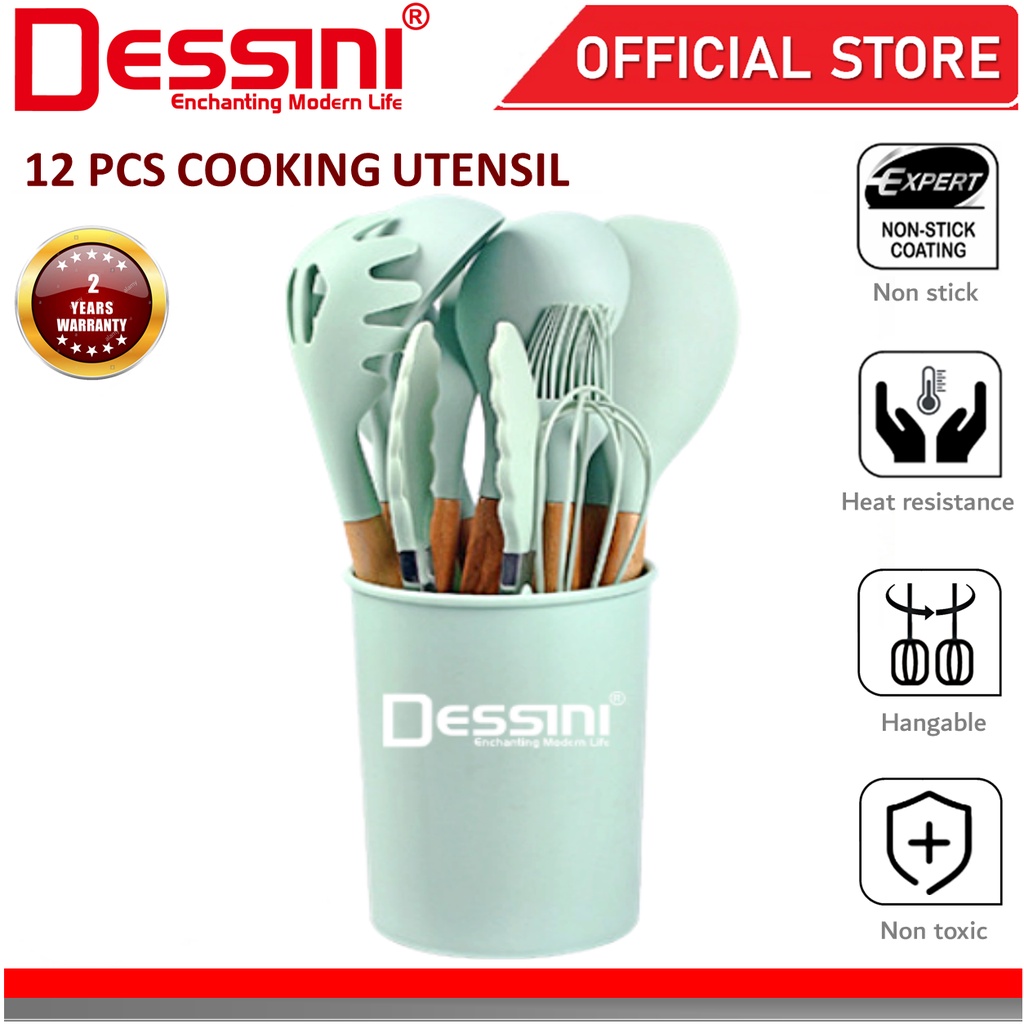 DESSINI ITALY Silicone Utensil Heat Resistance Kitchenware Spatula Soup Spoon Kitchen Tool (12 Pcs)