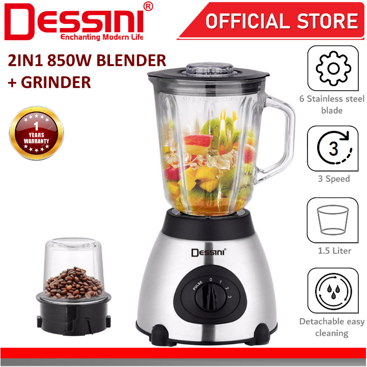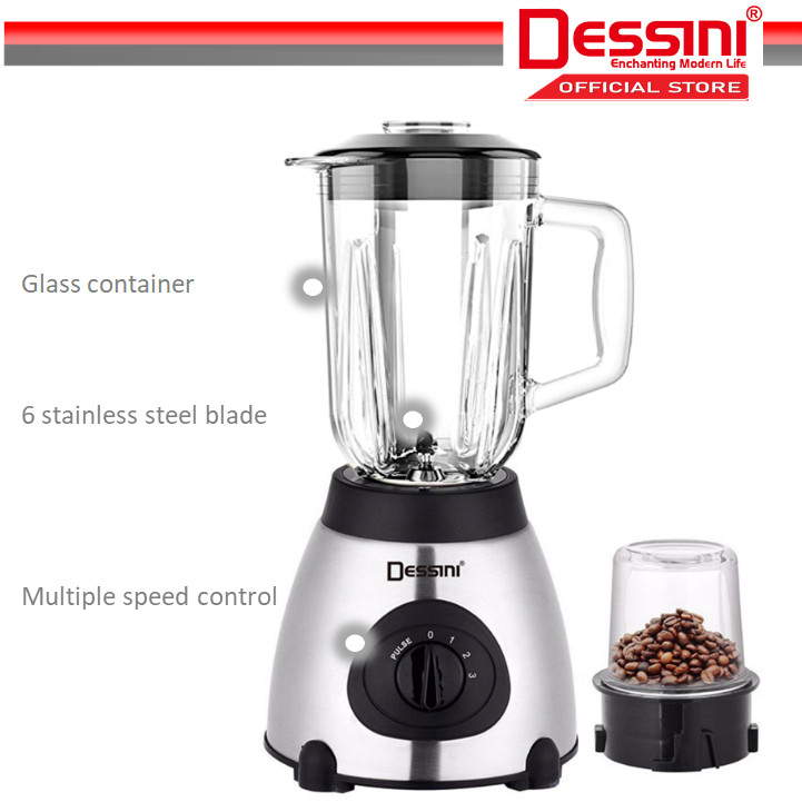 DESSINI ITALY Stainless Steel Blender Grinder Mixer Juicer Extractor Food Processor Smoothie Ice Crusher Pengisar (1.5L)