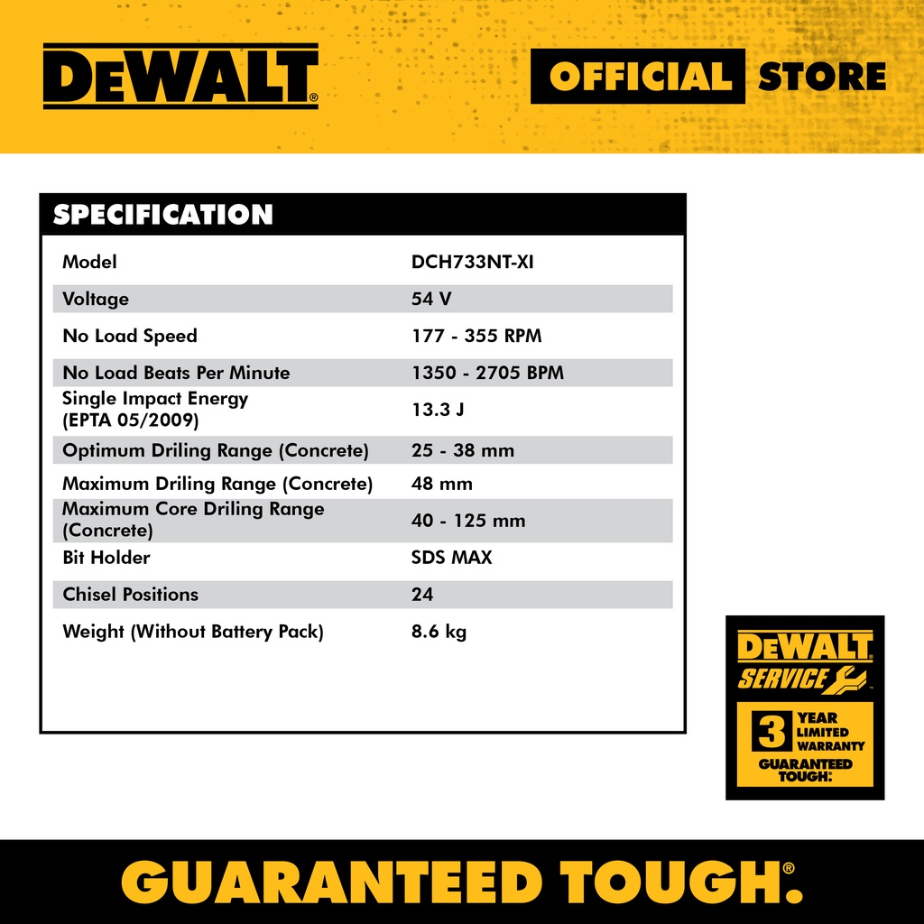 DEWALT DCH733NT-XI 54V Li-ion Brushless SDS-Max Combination 48mm - Bare Tool (Penukul Kombinasi)