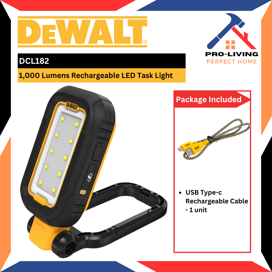 DEWALT DCL182 1,000 Lumens Lampu / 1,000 Lumens Rechargeable LED Task Light 充电式灯