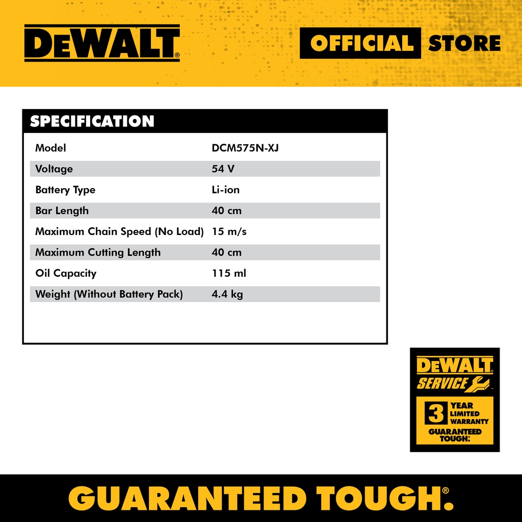 DEWALT DCM575N-XJ 54V XR Chain Saw - Bare Tool (Gergaji Rantai)