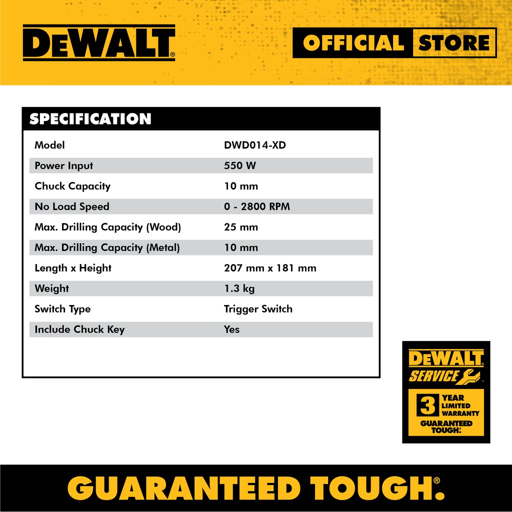 DEWALT DWD014-XD Rotary Drill (10mm/550W/2800rpm) (Gerudi Putar)