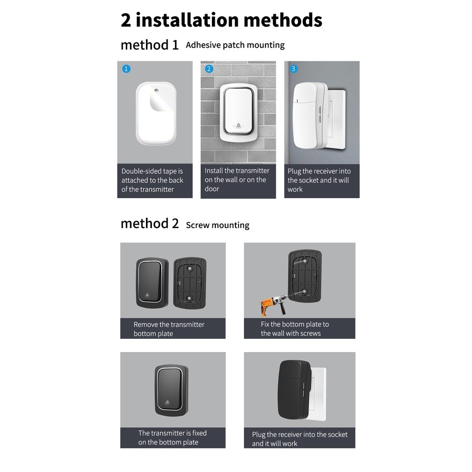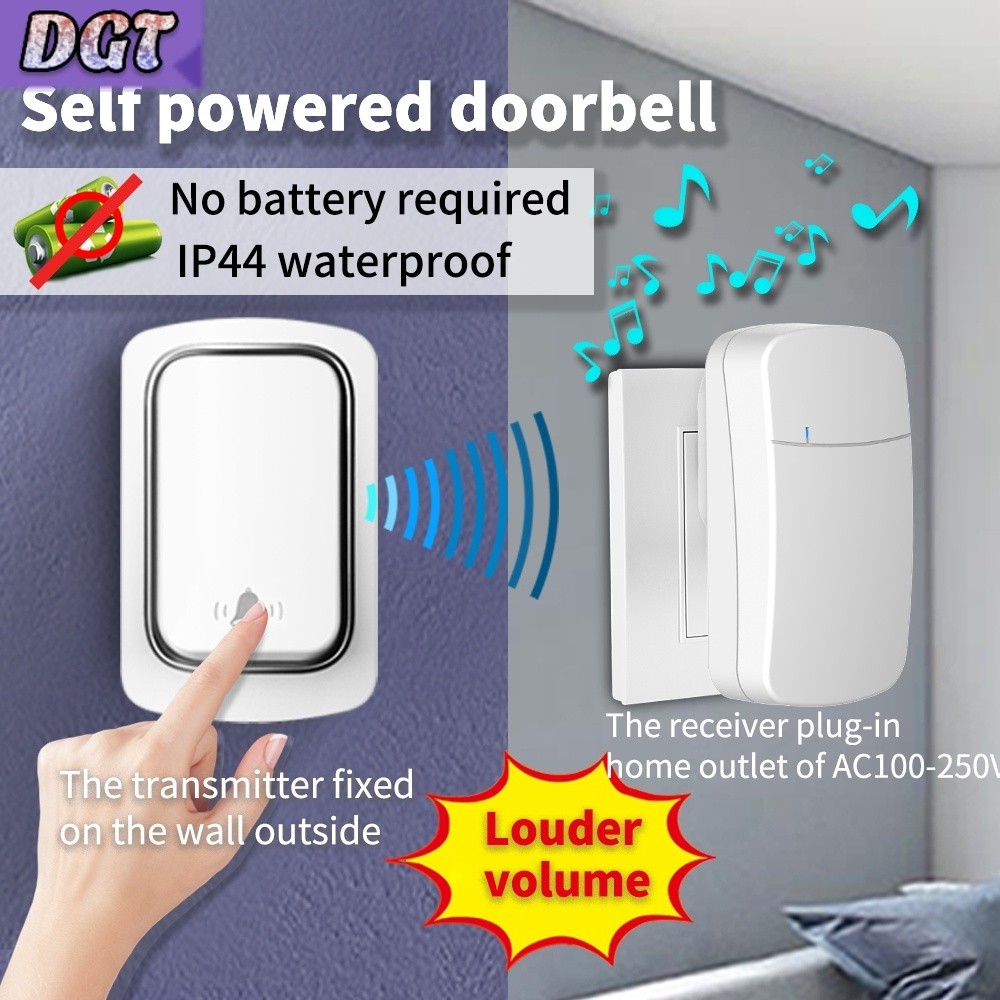 DGT Door bell Wireless Doorbell No Battery required Waterproof Door bell Sets Home Outdoor Kinetic Chime Doorbell