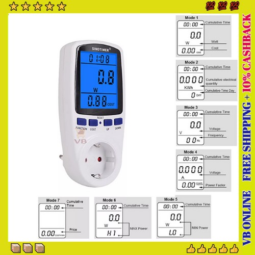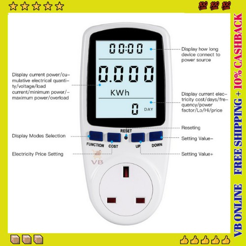 DIGITAL ELECTRICITY USAGE MONITORING MODES VOLTAGE AMPS WATT KWH POWER CONSUMPTION ANALYZER WITH LED-LIGHT
