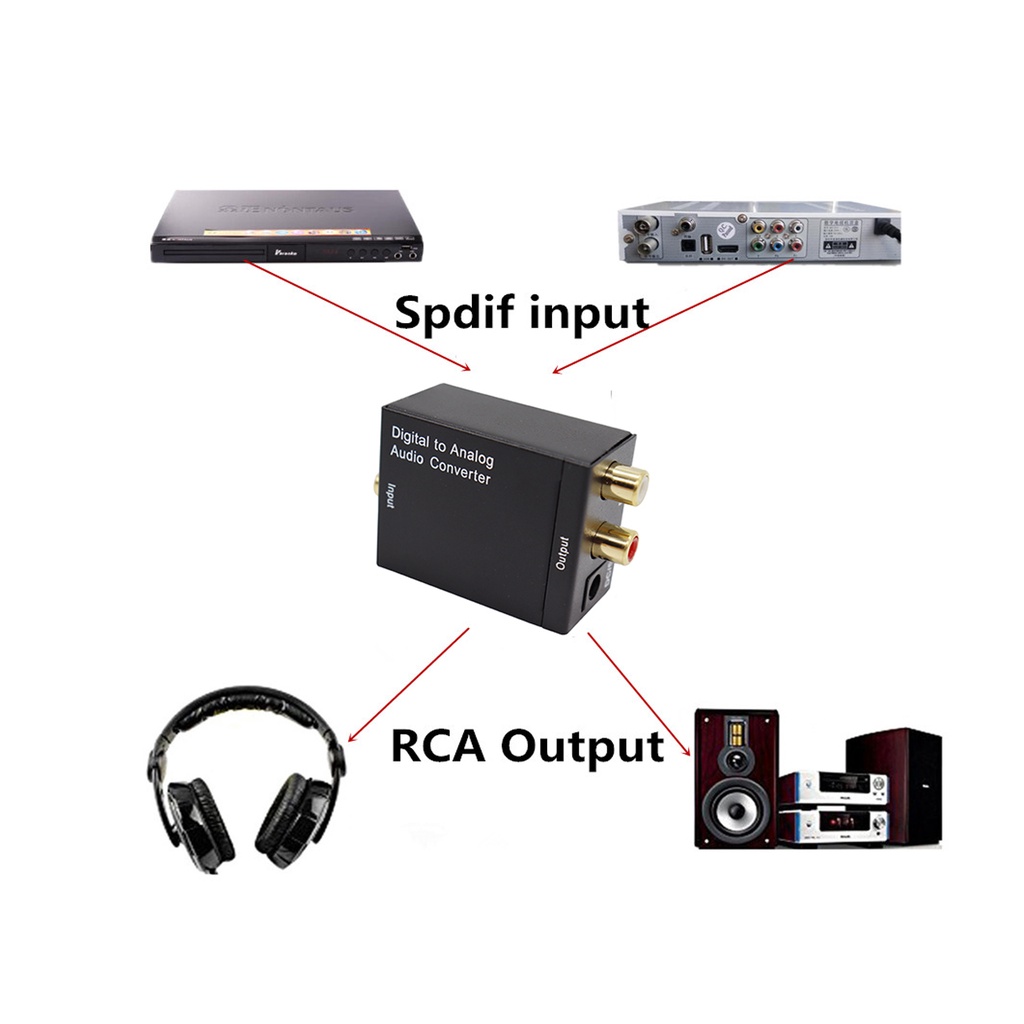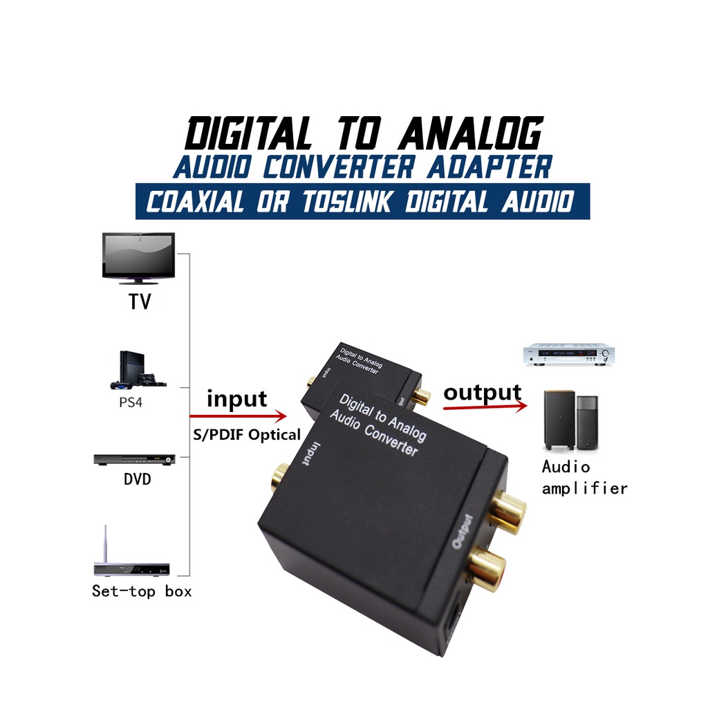 DIGITAL TO ANALOG AUDIO CONVERTER OPTICAL FIBER COAXIAL SIGNAL TO ANALOG DAC SPDIF STEREO 3.5MM JACK 2*RCA AMPLIFIER