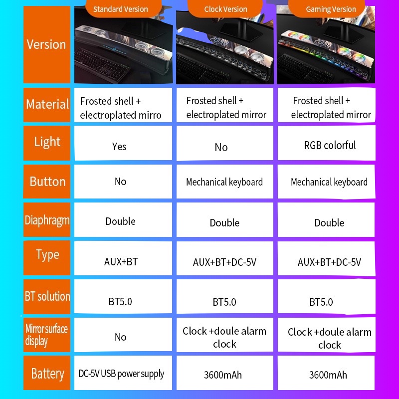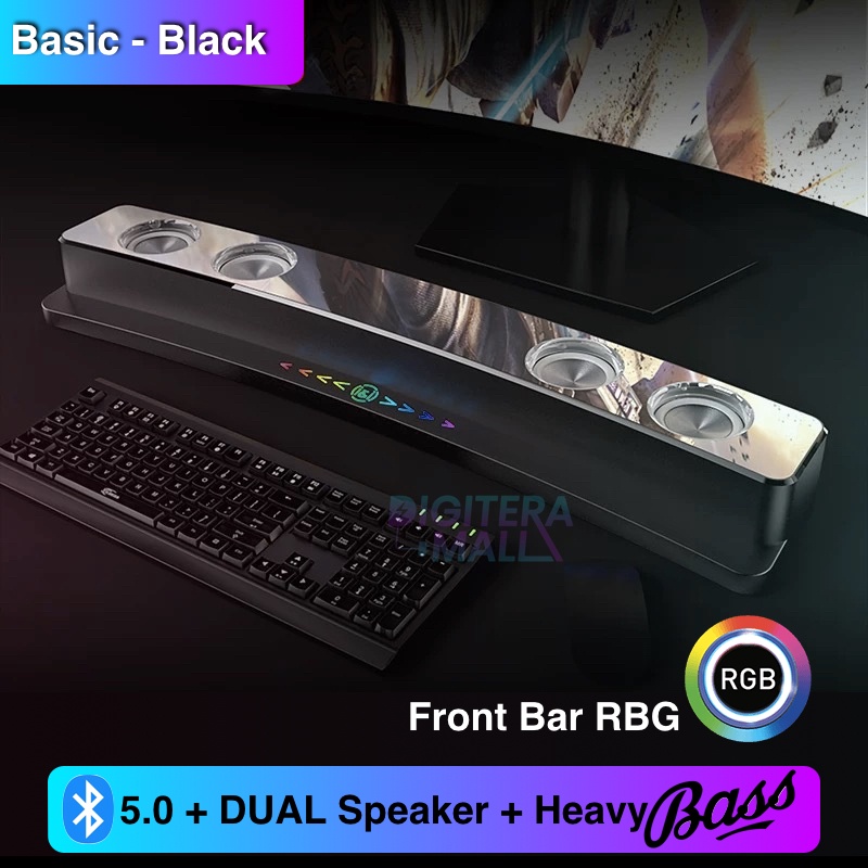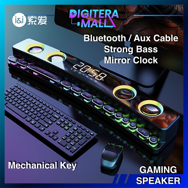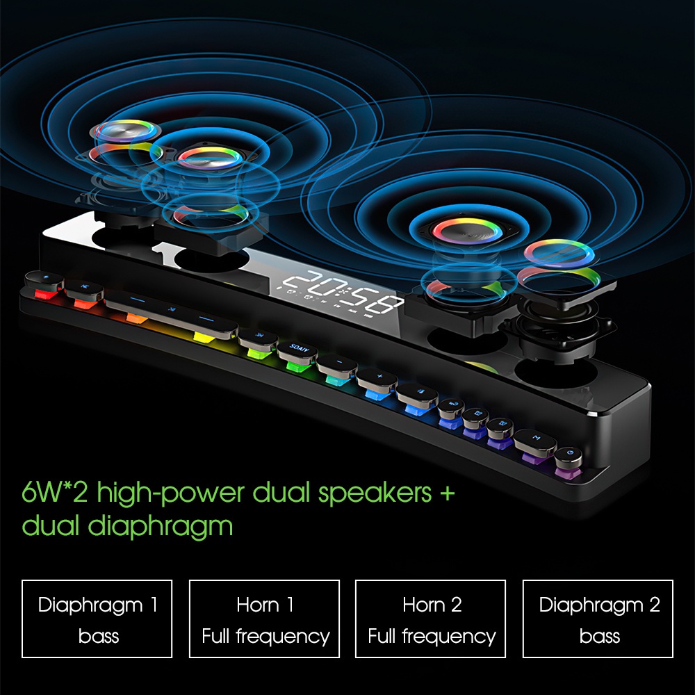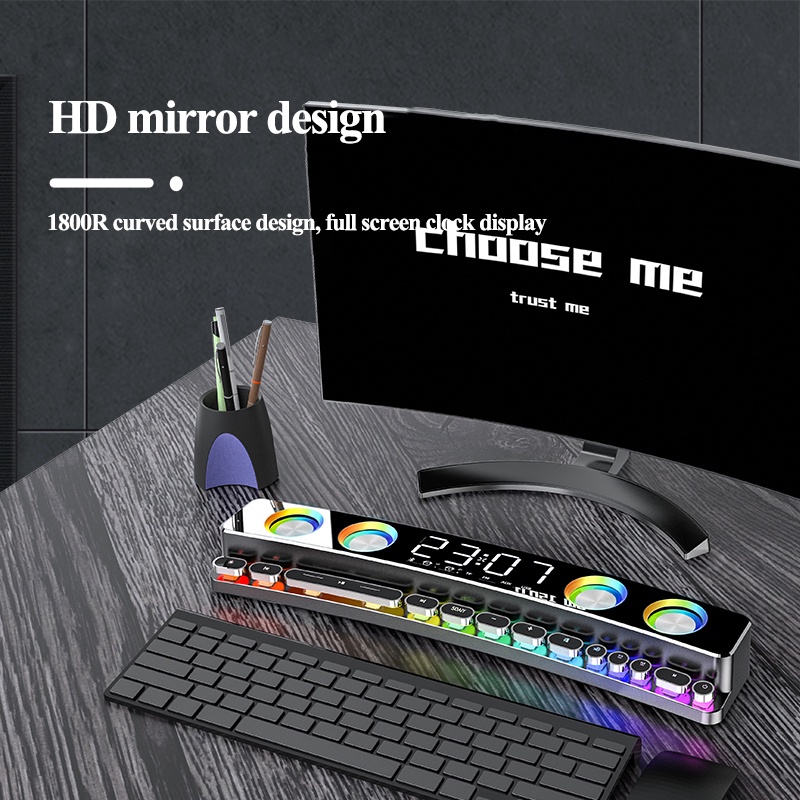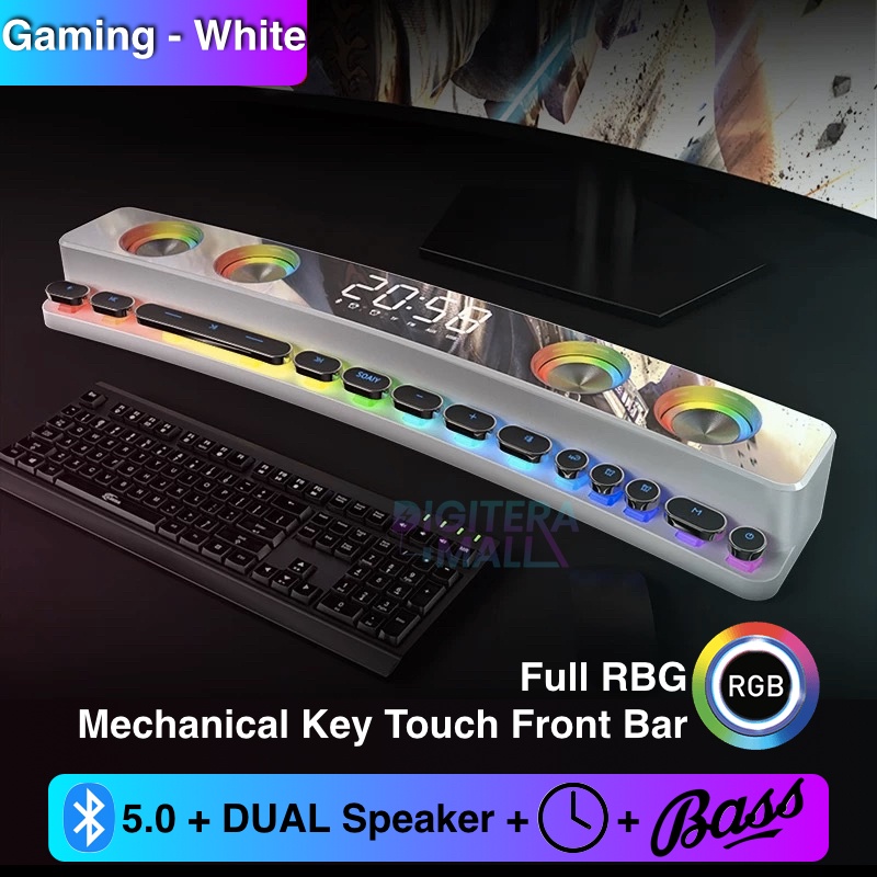 DIGITERA Gaming Speaker RGB Soundbar Wireless with Clock 3D Surround HIFI Sound LED Alarm USB Bass AUX for Gamer