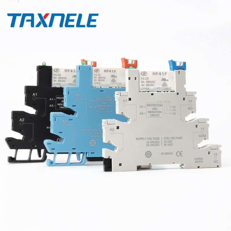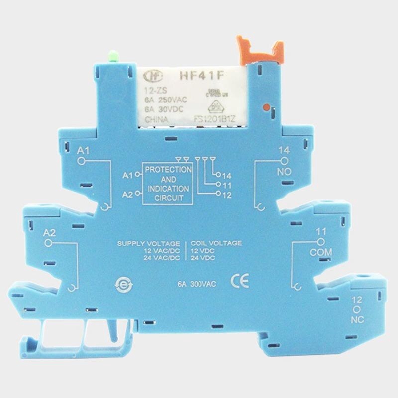 DIN RAIL HF41F 12V 24V Integrated PCB Mount Power Relay With Relay Holder Voltage Contact Relay Module Set