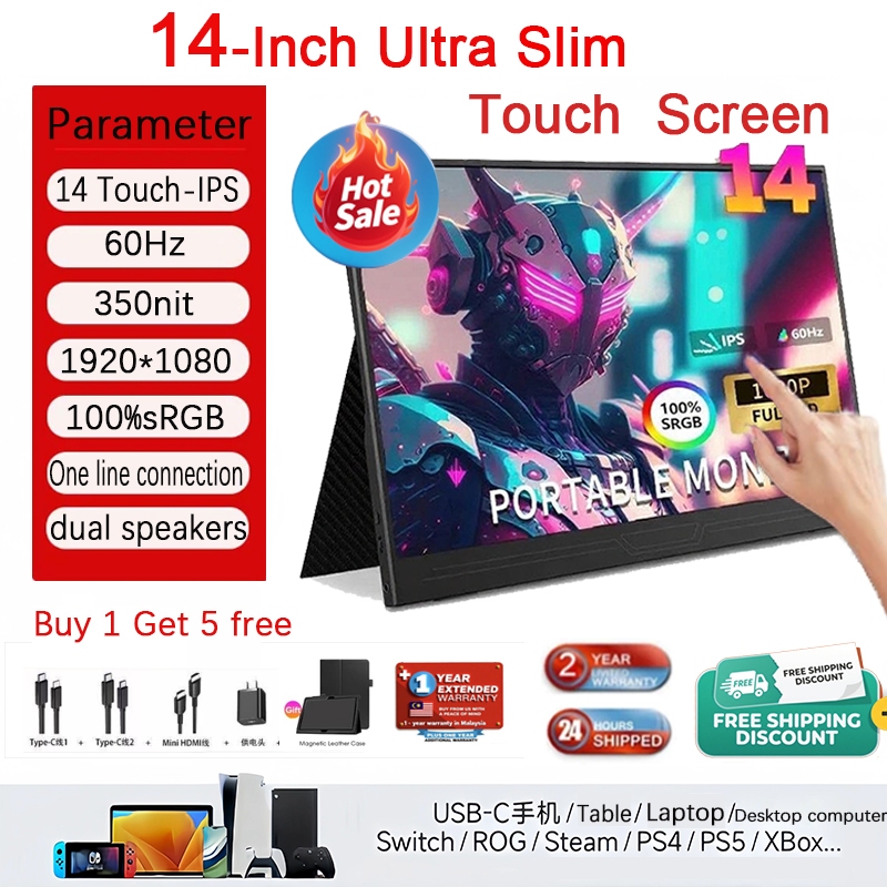 DITU Portable Touch Screen Monitor 14 /15.6 inch External Monitor 1080P HDR PC Gameing Monitor For Switch PS4 Phone Laptop XBOX Laptop