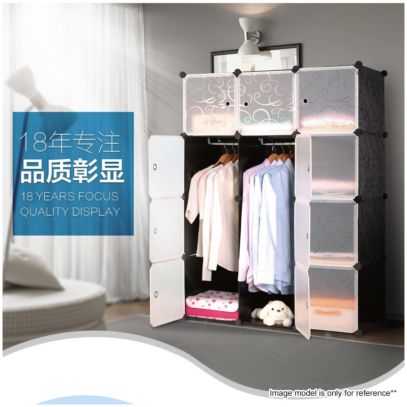 ALX DIY Black Flower Cube Rack Shelves Storage Box Cabinet Wardrobe Hanger Almari