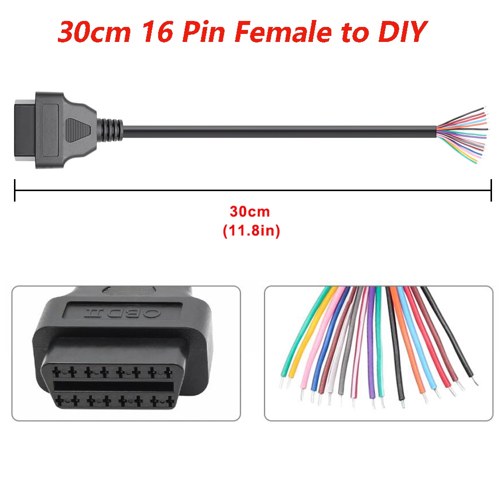 DIY Cable ELM327 Auto Car Cable OBD Cable 30cm OBD2 16 Pin Female to DIY Extension Cable 16Pin Male to DIY Extension Cable OBD Cable