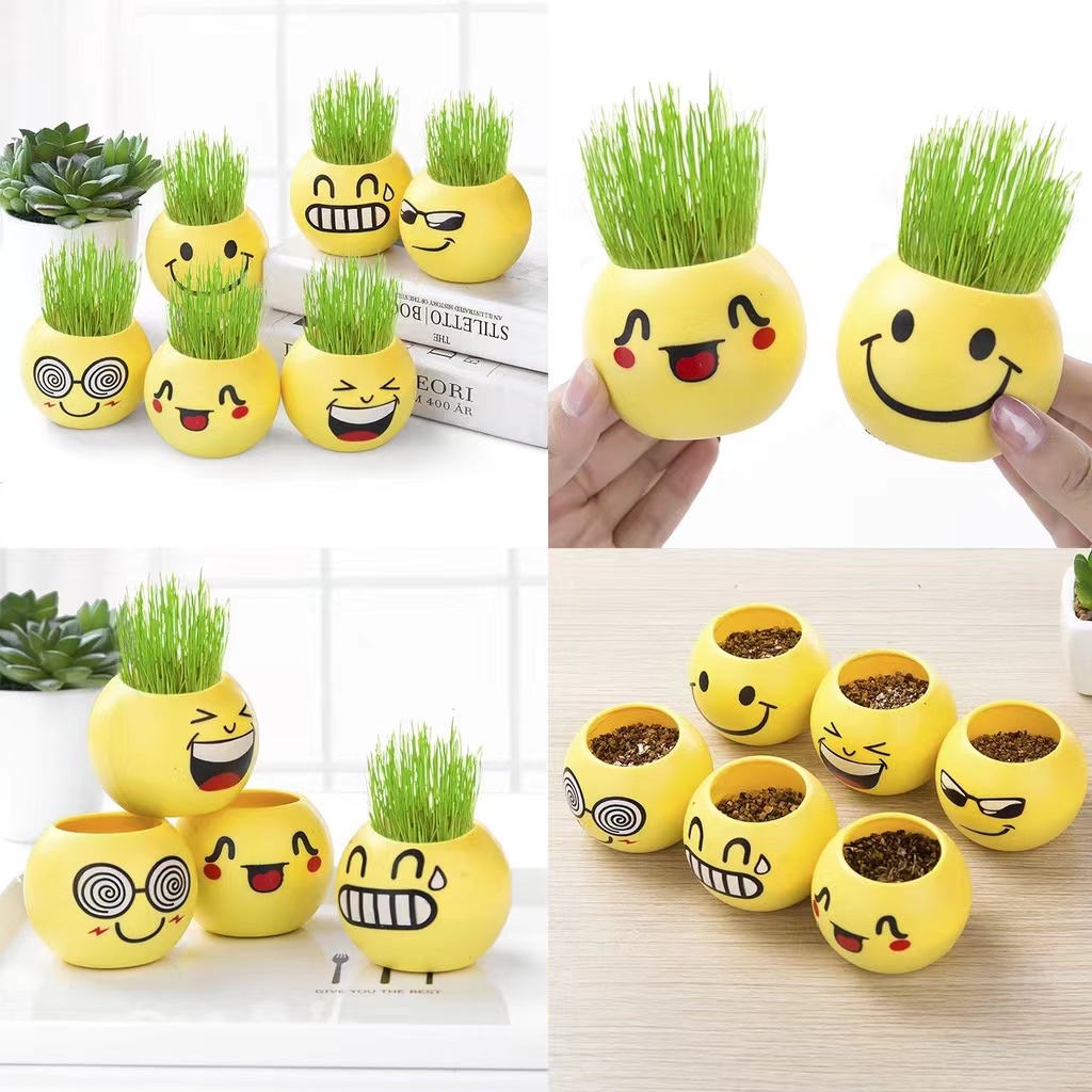 DIY Emoji Potted Mini Plant Cute Potted Plant Indoor Mini Potted Plant Tumbuhan Indoor