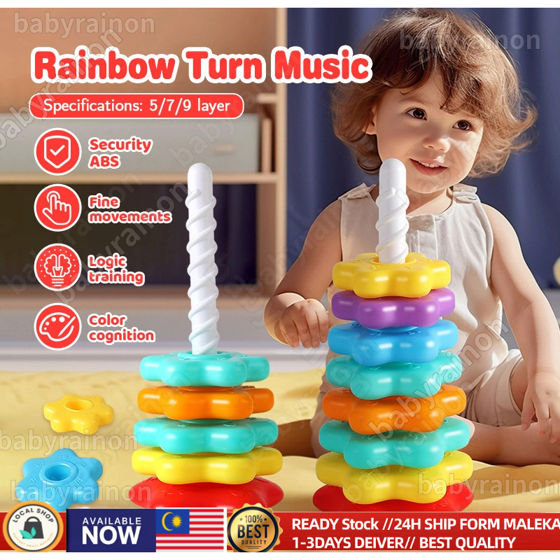 Mainan Menara Pelangi Bayi Baby Rainbow Stacking Spinning Tower Toy Early Learning Montessori toy 儿童彩虹转转乐叠叠乐1-2岁宝宝益智早教转转