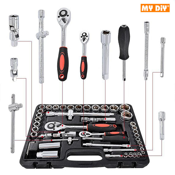 DIY Online4u - DECKER 61pcs Tools Set Ratchet Box Socket Set 1/2" 1/4" Dr Socket Wrench Set Spanner