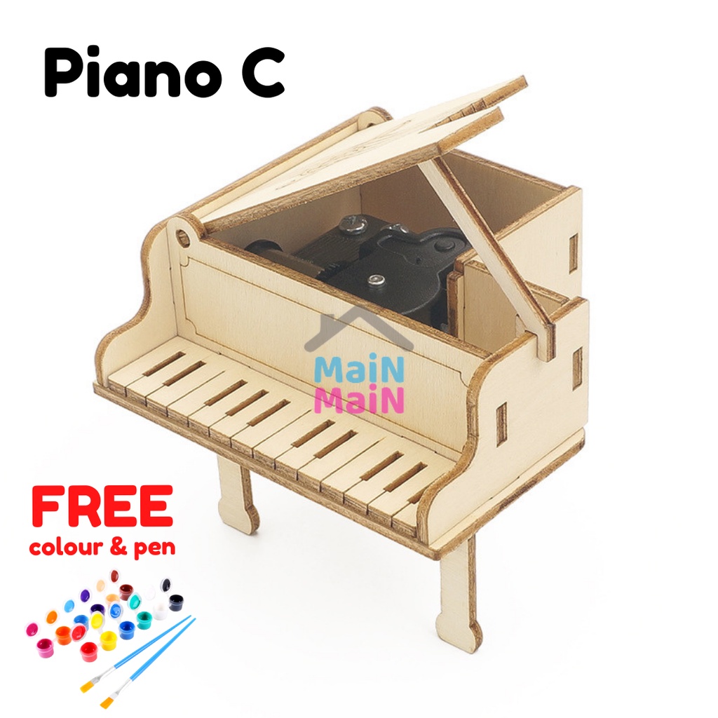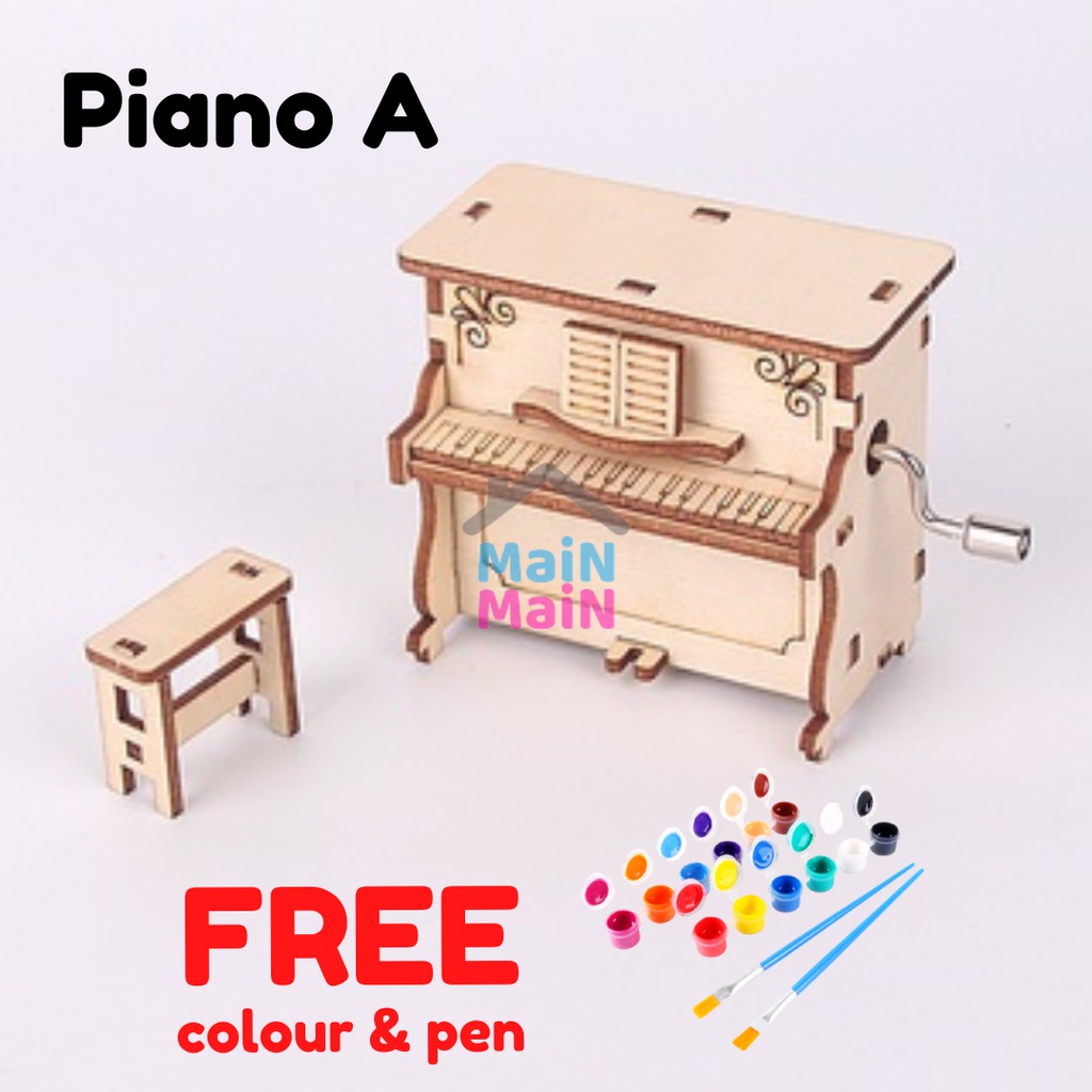 DIY Piano Music Box STEM RBT project Model Kits Toys for Children Wooden Hand Shake Music Box Assembly Model (MaiNMaiN)
