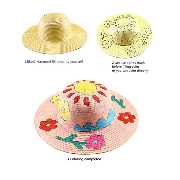DIY Straw Hats Creative Art Painting Straw Hat Custom Design For Kids Diy, Art and Craft
