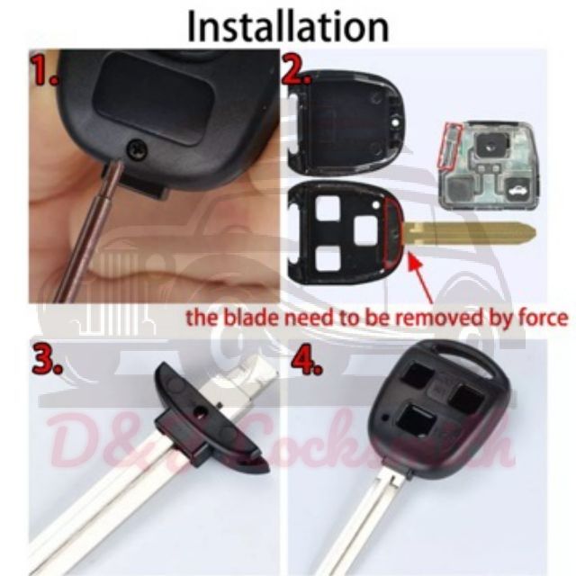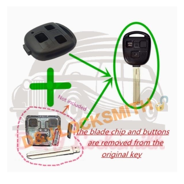 DIY Toyota Lexus 2 / 3 Button Remote Key Shell Cover Casing Replacement Case Alarm RX400h Harrier Estima Passo RX330