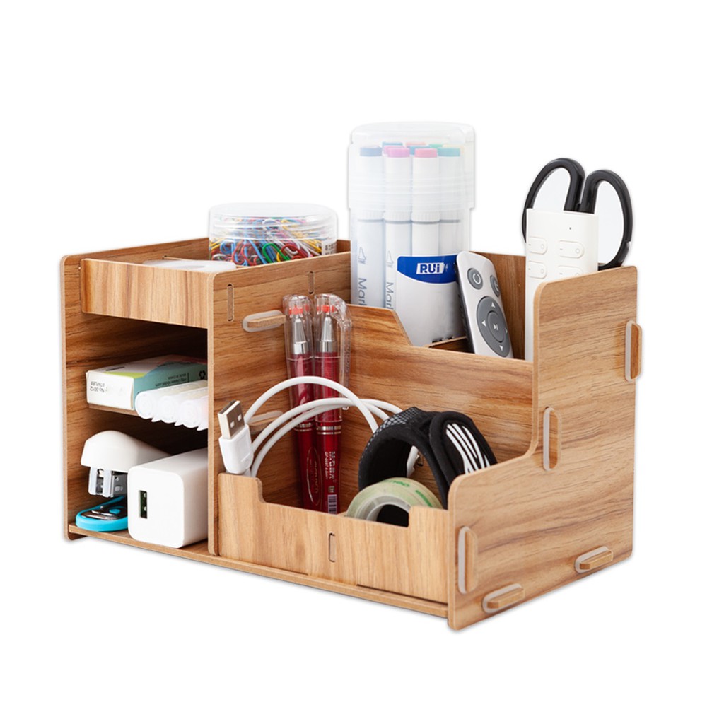 DIY WOODEN STATIONERY FILE RACK DESKTOP DRAWER ORGANIZER PEN PENCIL HOLDER CD BOOK STAND OFFICE HOME DESKTOP STORAGE BOX