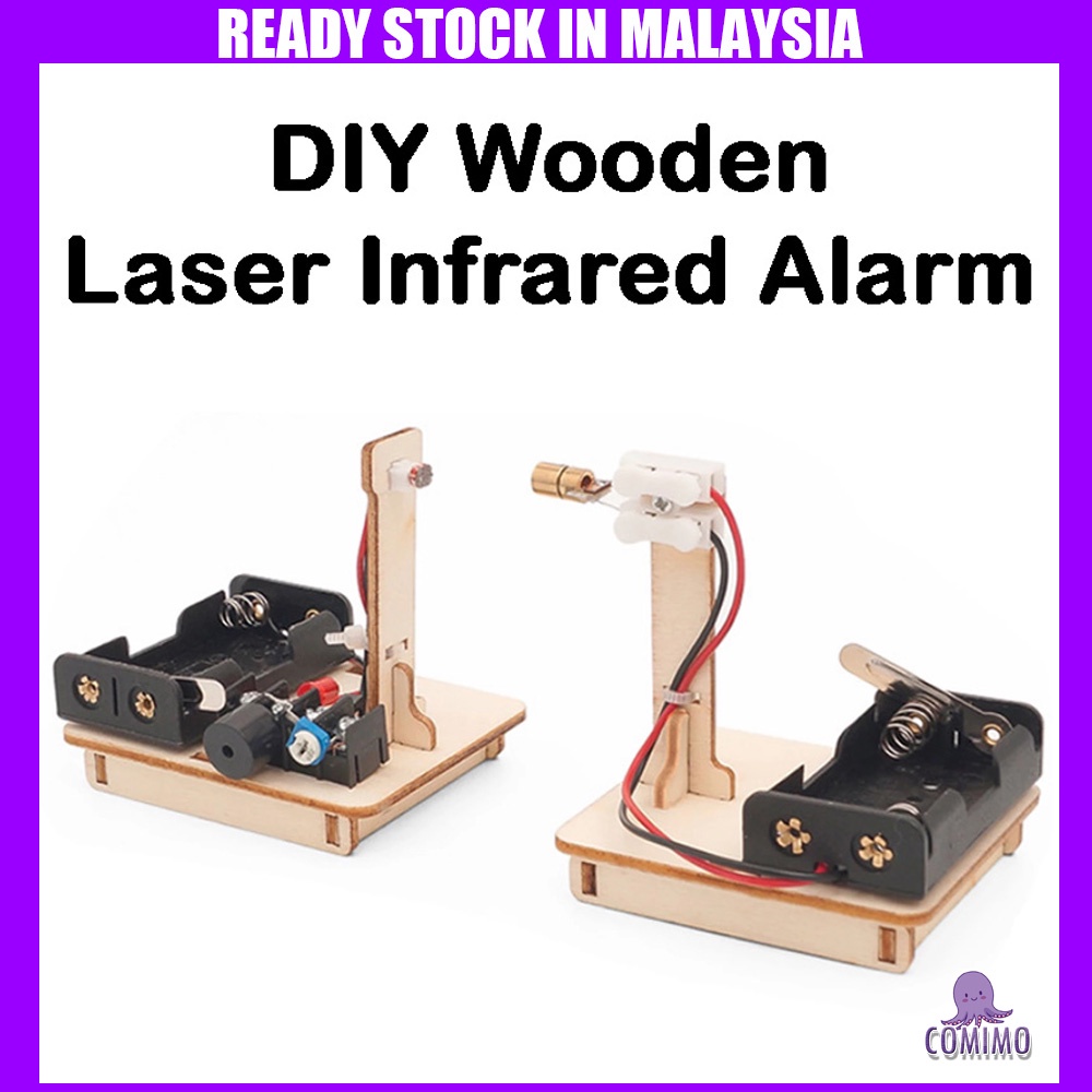 DIY Wooden Laser Infrared Alarm Aiming Shoot Anti-theft Burglar Alarm Module Experiment STEM Educational Toys For Child