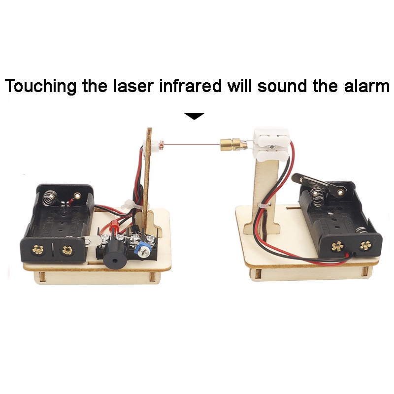 DIY Wooden Laser Infrared Alarm Aiming Shoot Anti-theft Burglar Alarm Module Experiment STEM Educational Toys For Child