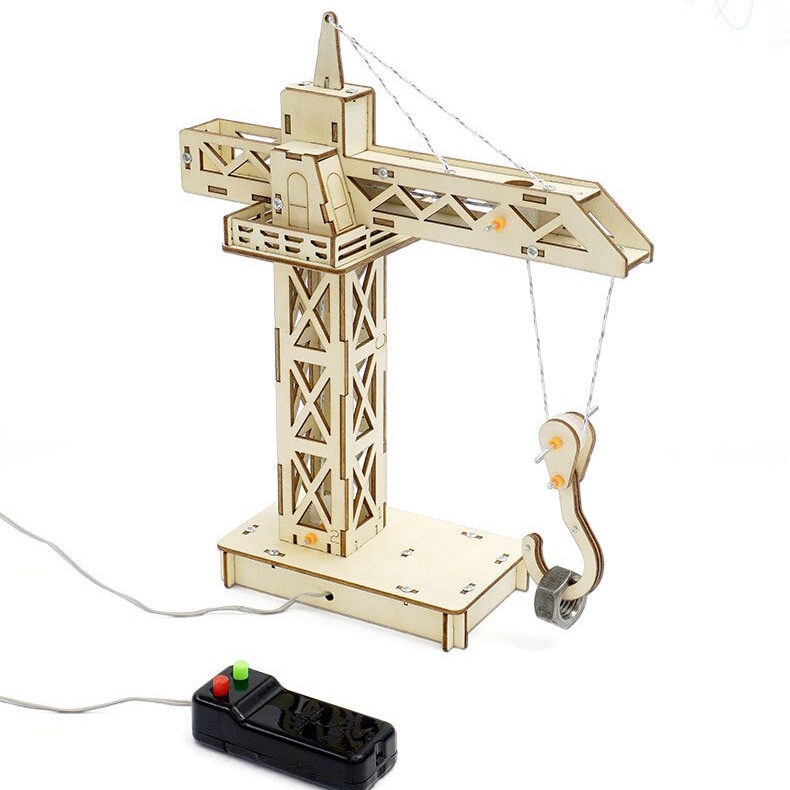 DIY Wooden Remote Control Tower Crane Toy Educational Science Experiment STEM Model Kits for Kid