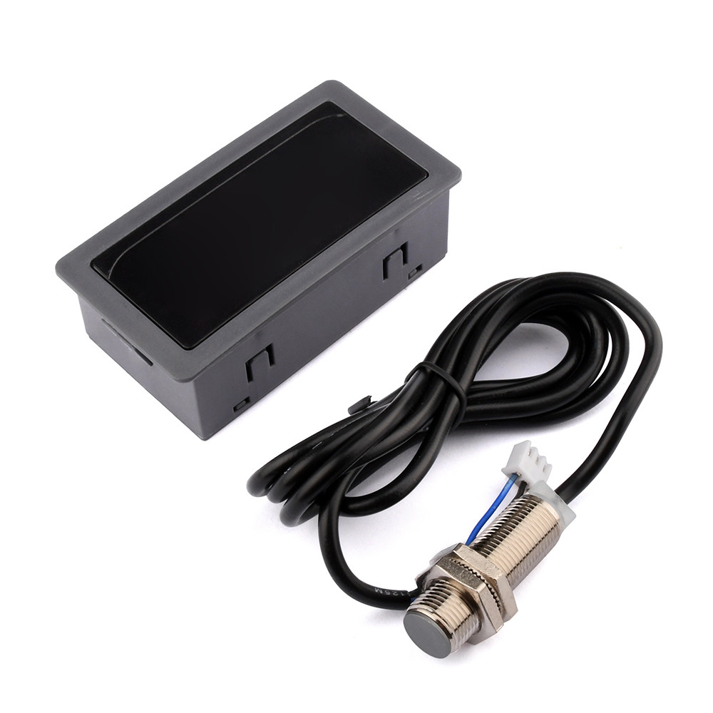 DIYMORE 4 Digital Red LED Tachometer RPM Gauge Speed Meter with Hall Magnet Sensor NPN Switch for Lathe Conveyor Belt