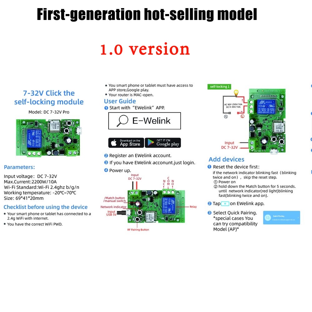 DIYMORE Ewelink Automatic door WiFi Wireless Smart Switch Home Relay Module USB DC 5V and AC DC 7-32V Self-Locking