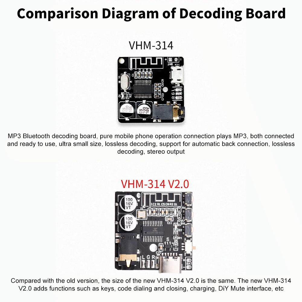 DIYMORE VHM-314-V2.0/MH-MX28/MH-MX38 Bluetooth Decoder Board MP3 lossless car speaker power amplifier modified Bluetooth Type-C interface