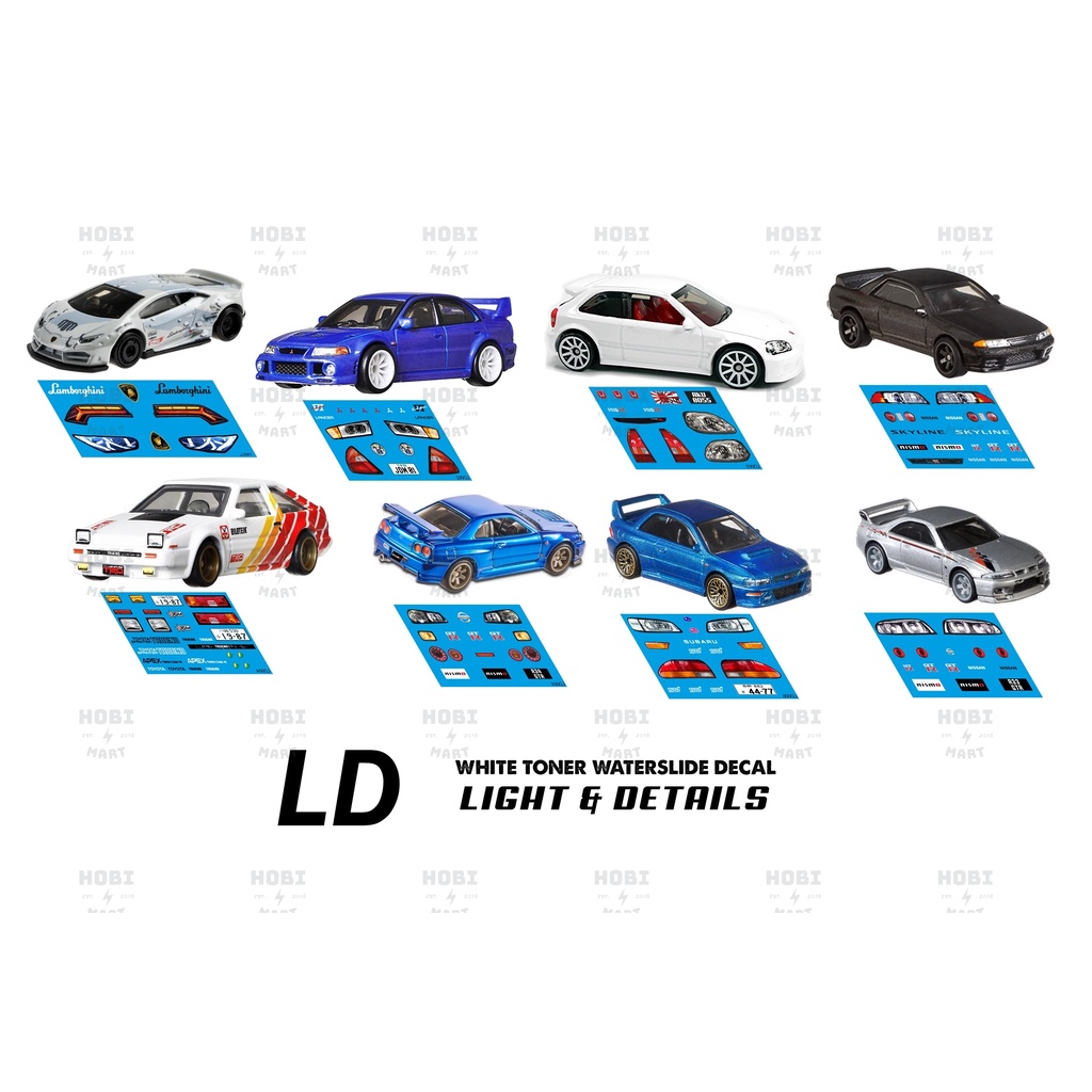 DL Lights & Details Decals # White Toner Waterslide Decals 1/64 diecast custom for Hotwheels
