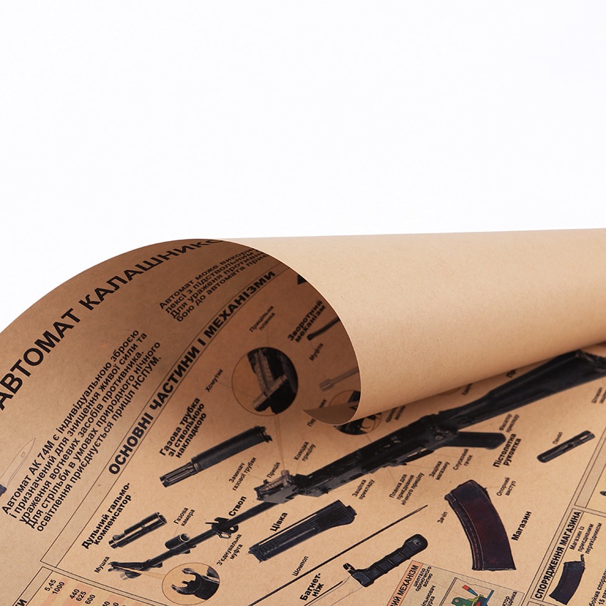 DLKKLB The AK74 Gun Poster Vintage Kraft Paper Poster Wall Sticker Collection Bars Kitchen Drawings Poster Adornment