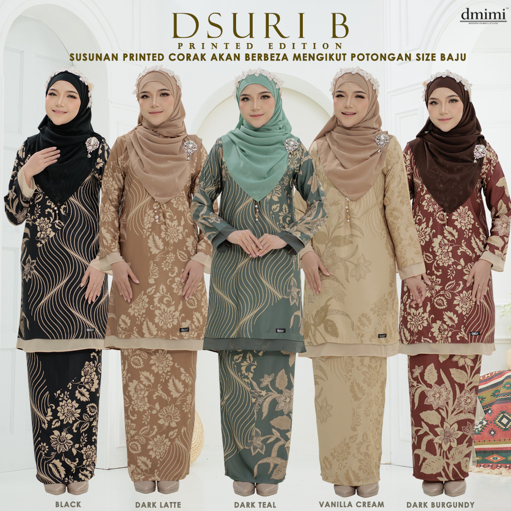 DMIMI Baju Kurung Pahang DSURI | Kurung Printed Moden Labuh | High Quality Dobby Silk Chiffon | Small Size to Plus Size