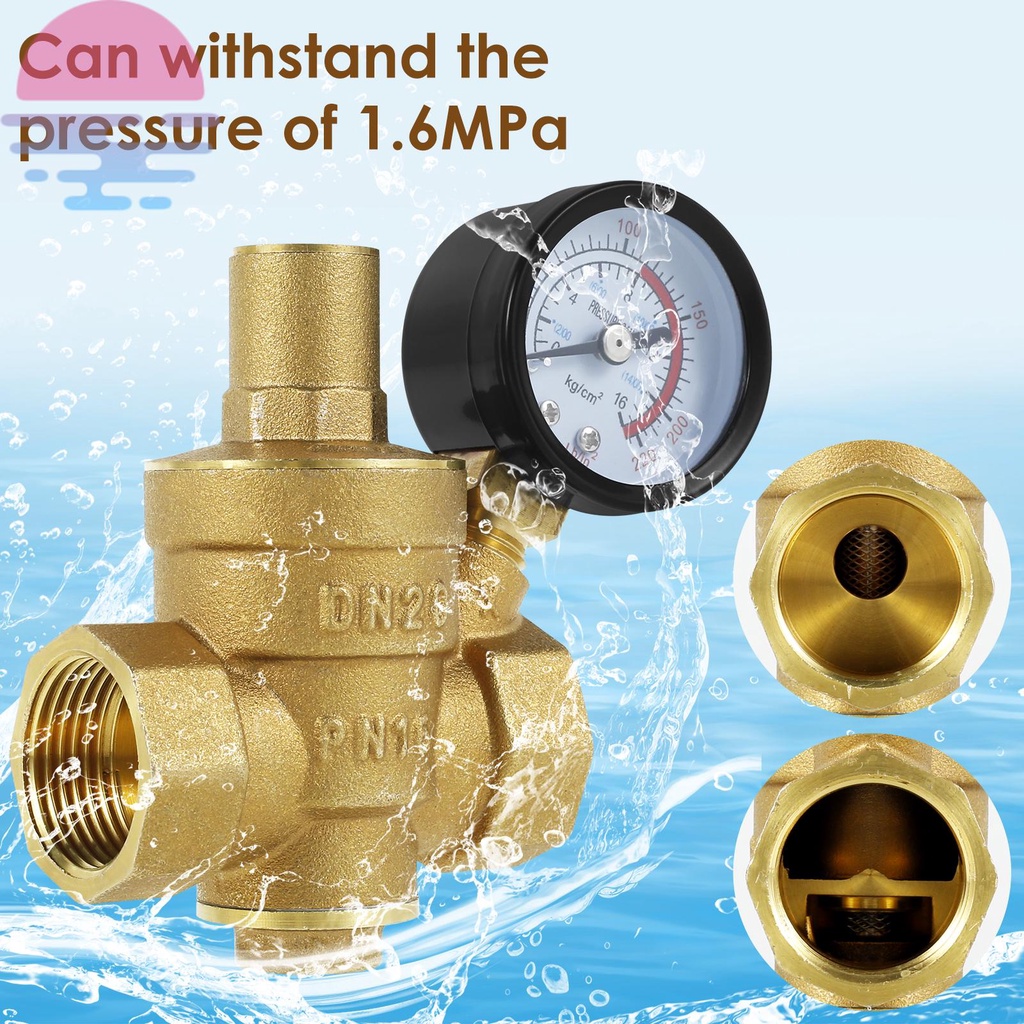 DN15/20 Brass Water Pressure Reducer Adjustable Water Pressure Regulator Valve for Water Oil with Gauge Meter