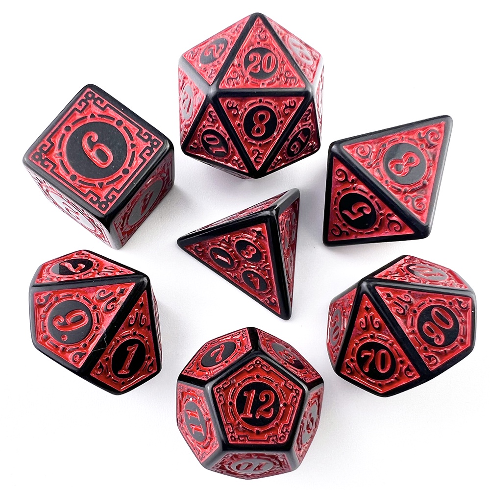 DND Polyhedral Dice Set with Textures Pattern 7pcs of D4 D6 D8 D10 D10% D12 D20 for RPG Board Game Accessories