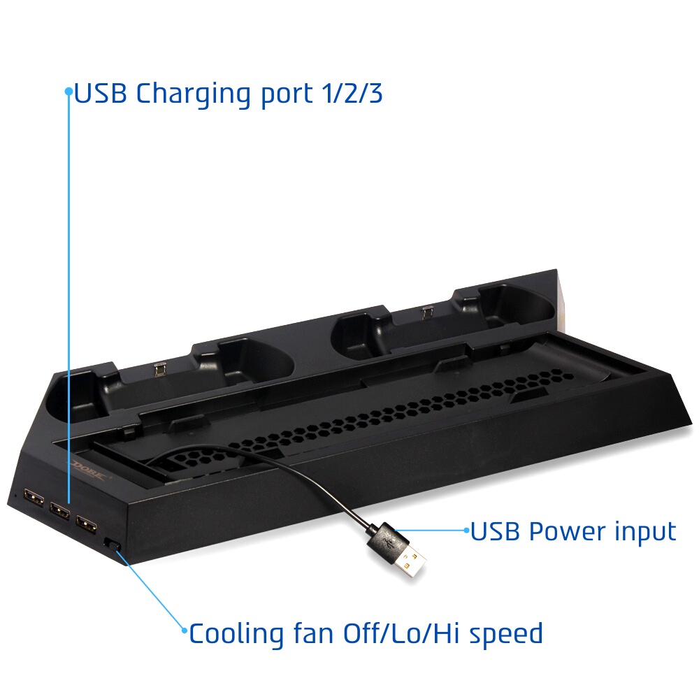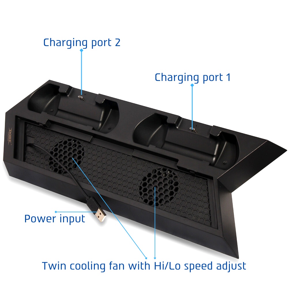 DOBE PS4/Slim/Pro Console Vertical Stand with Twin Cooling Fans Dual Controller Charger TP4-023B