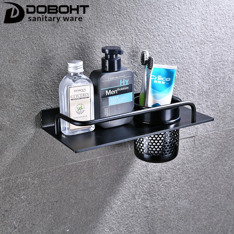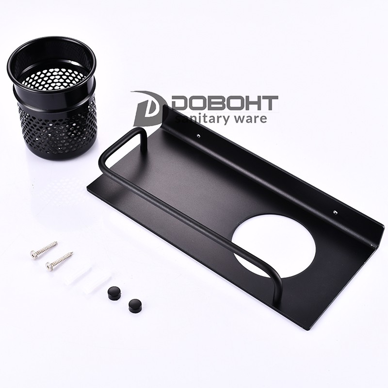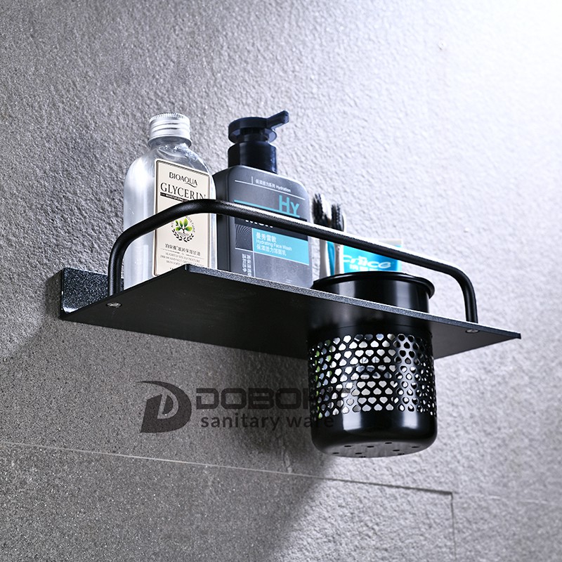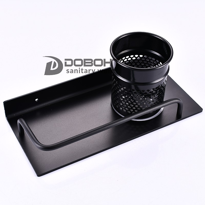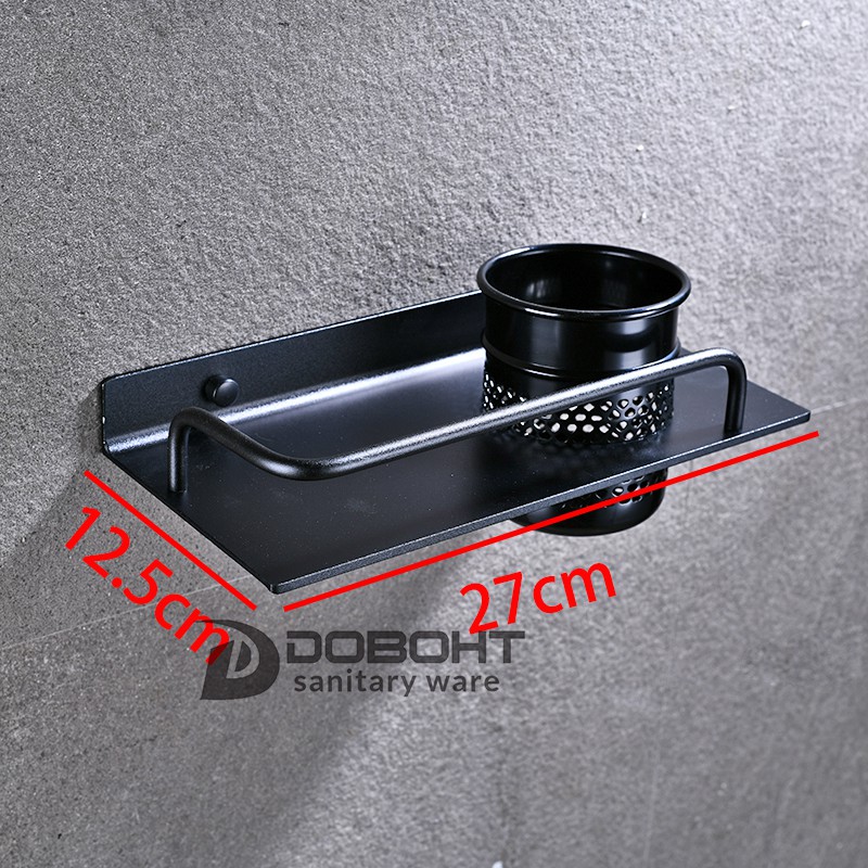DOBOHT Black Aluminum Alloy Bathroom Tooth brush Holder Counter Storage Comb Holder Shelf A1001106-1BL