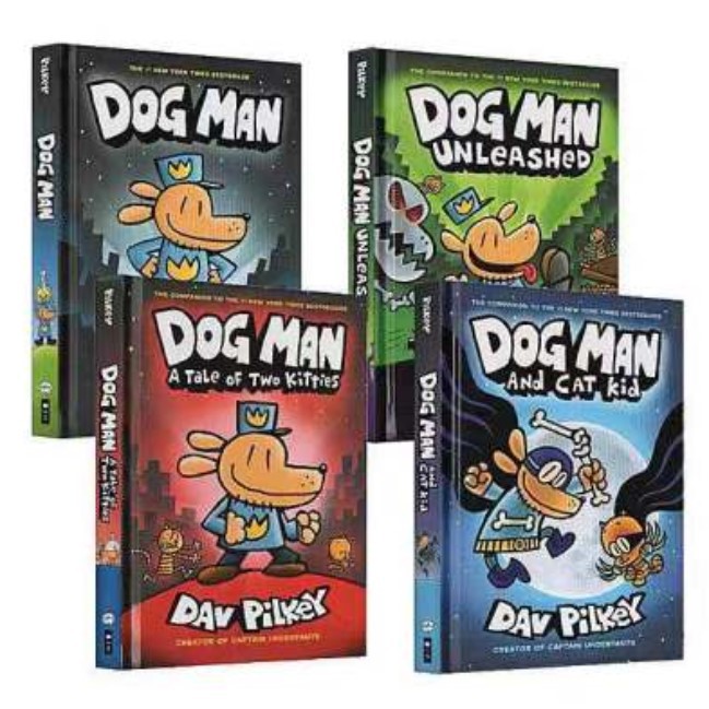 DOG MAN 4 Volumes Children English HARD COVER Books Funny Adventure 4 Story Books for Kids Children Comic Book Reading