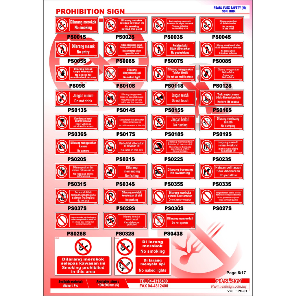 PROHIBITION SIGN 100 X 300MM, 300X400MM, 400X600MM , PLEKAT/STICKER /PVC TRAK ANGKAT SUSUN, KANAK TIDAK DIBENARKAN