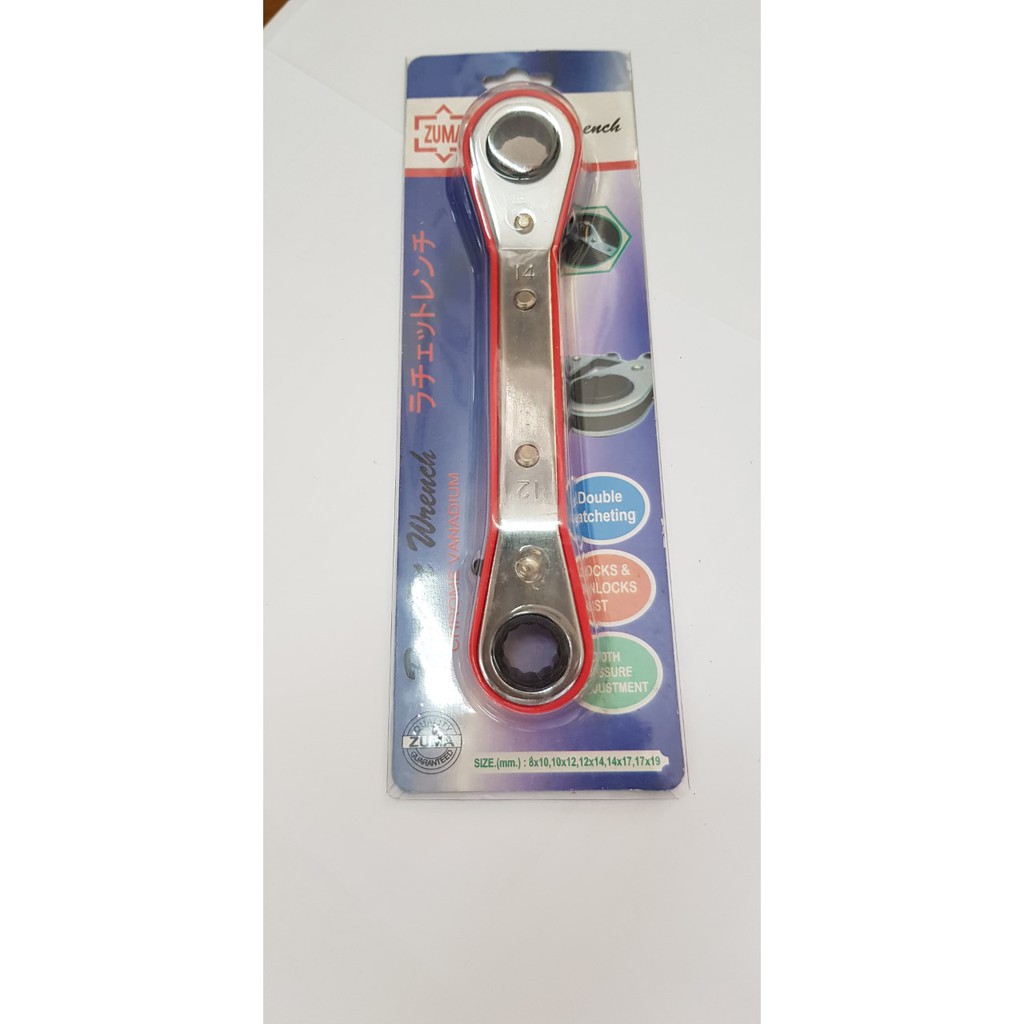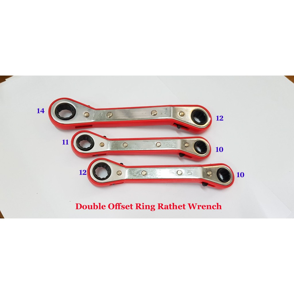 DOUBLE OFFSET RING RATCHET WRENCH-FULL RED COLLAR ANTI-SLIP