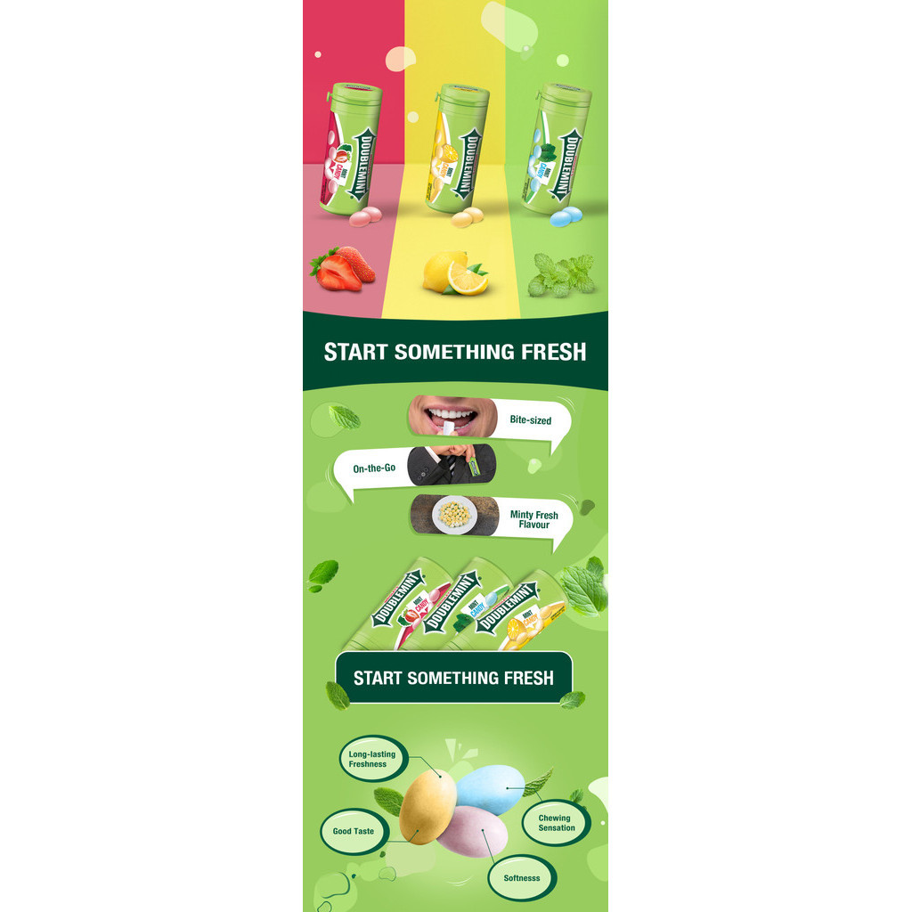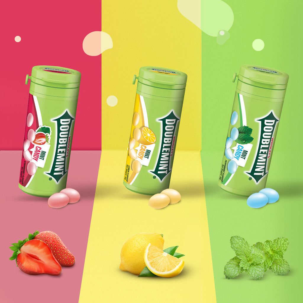 DOUBLEMINT Chewy Mints Tube 30g (Lemon, Peppermint, Strawberry)